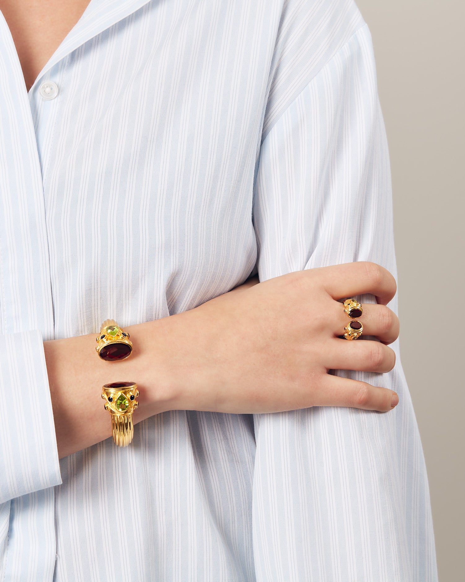 Sheida Bangle – Garnet, Peridot and Black Onyx | 24K Gold Vermeil on Sterling Silver S