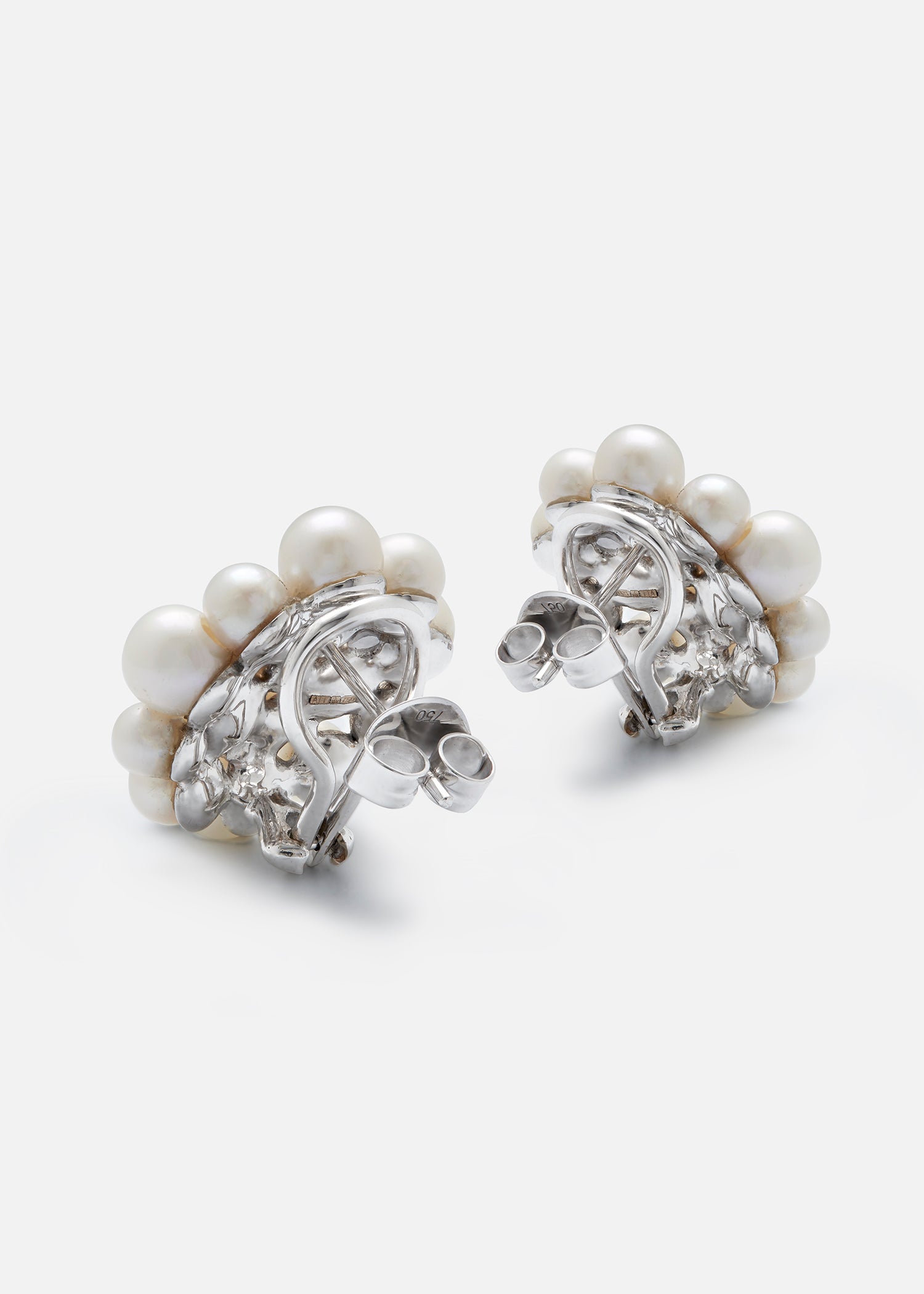 18K White Gold Lily Stud Earrings with Pearls and Diamonds
