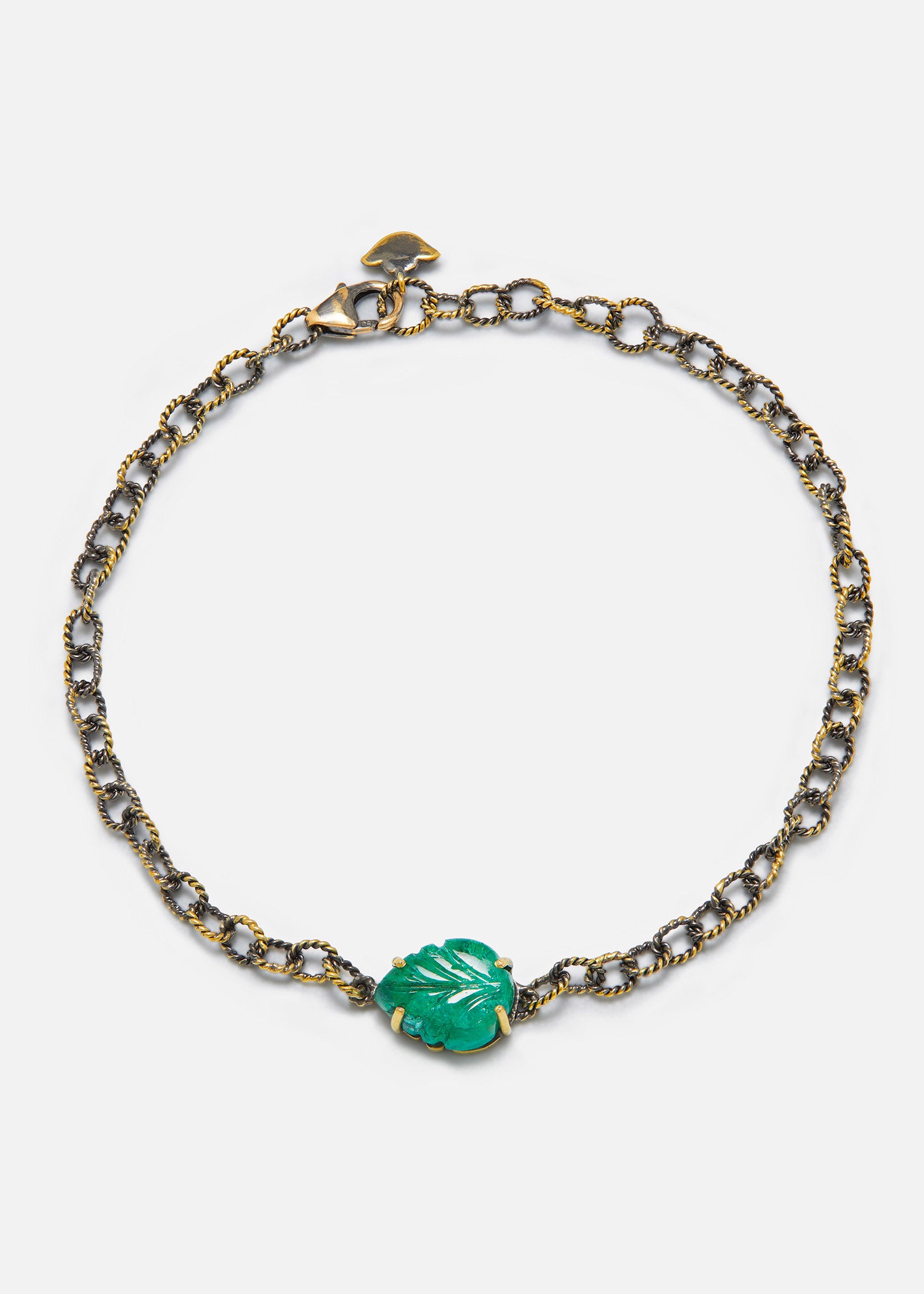 18k yellow gold and black rhodium mens Panna bracelet with carved emerald. This collection uses black rhodium which is plated on the yellow gold and is partially removed to give a vintage effect.