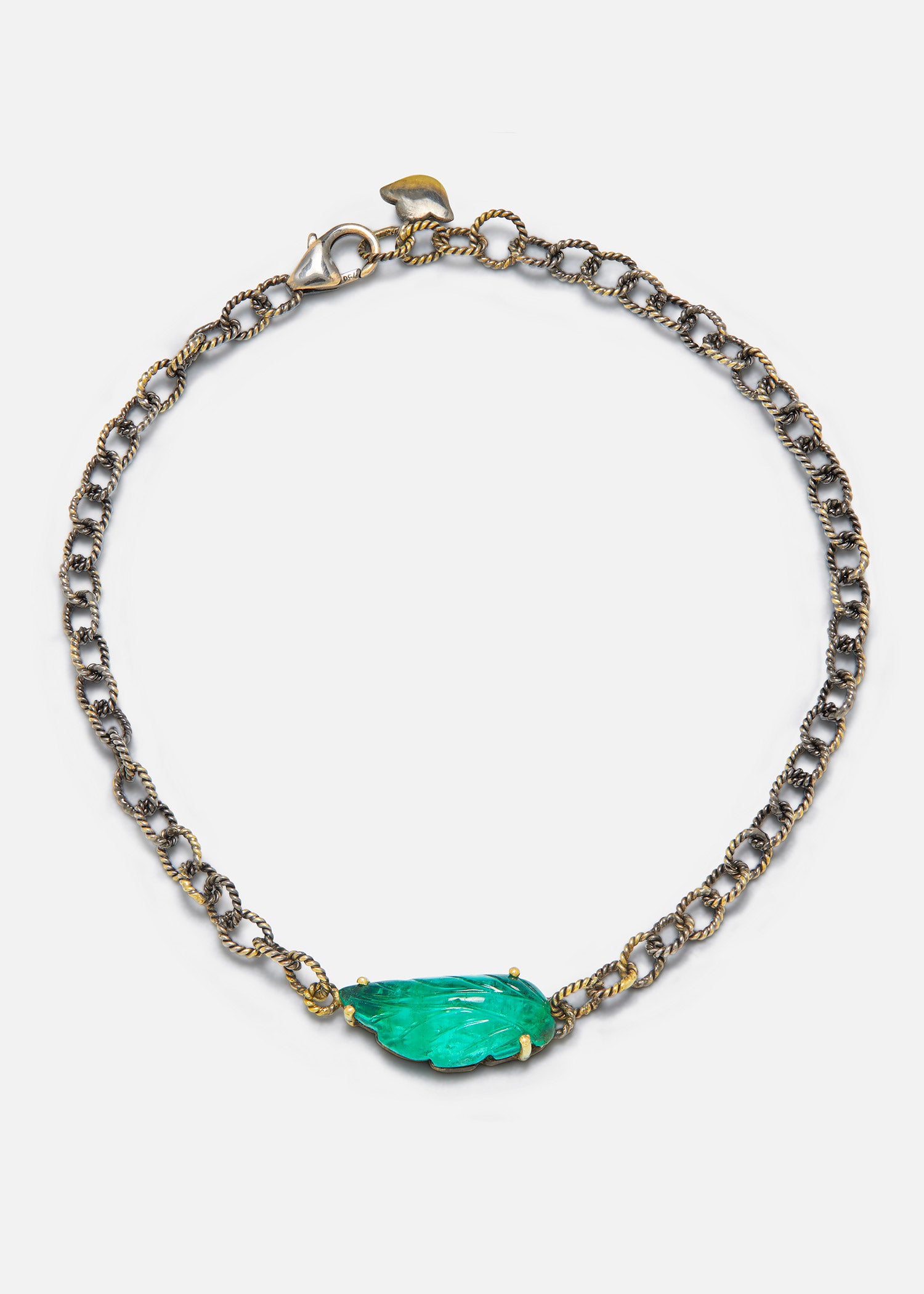 18k yellow gold and black rhodium mens Panna bracelet with carved emerald. This collection uses black rhodium which is plated on the yellow gold and is partially removed to give a vintage effect.
