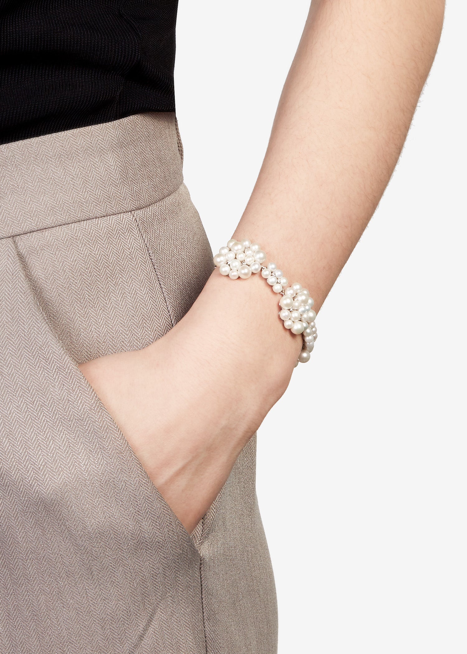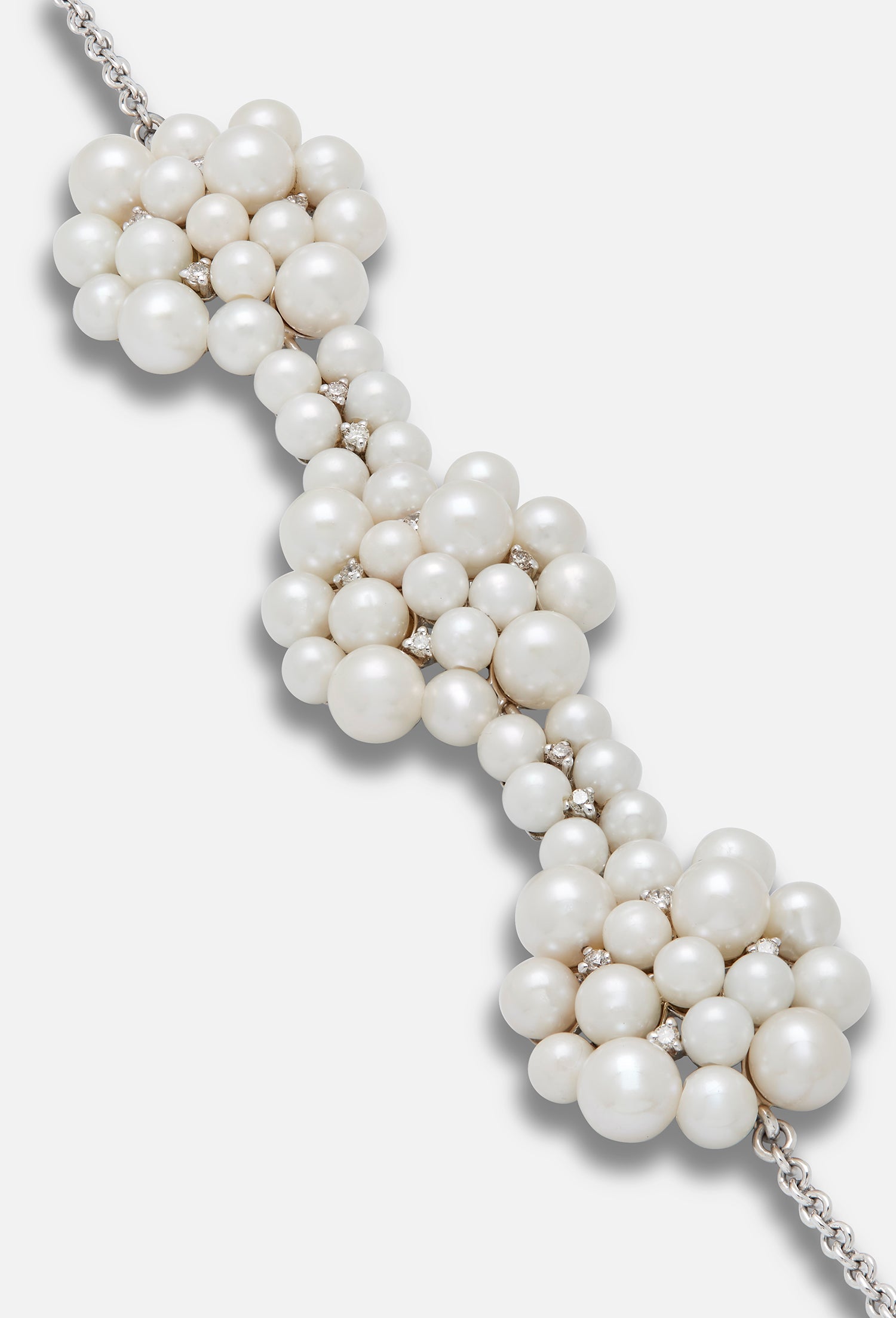 18K White Gold Lily Bracelet with Pearls and Diamonds