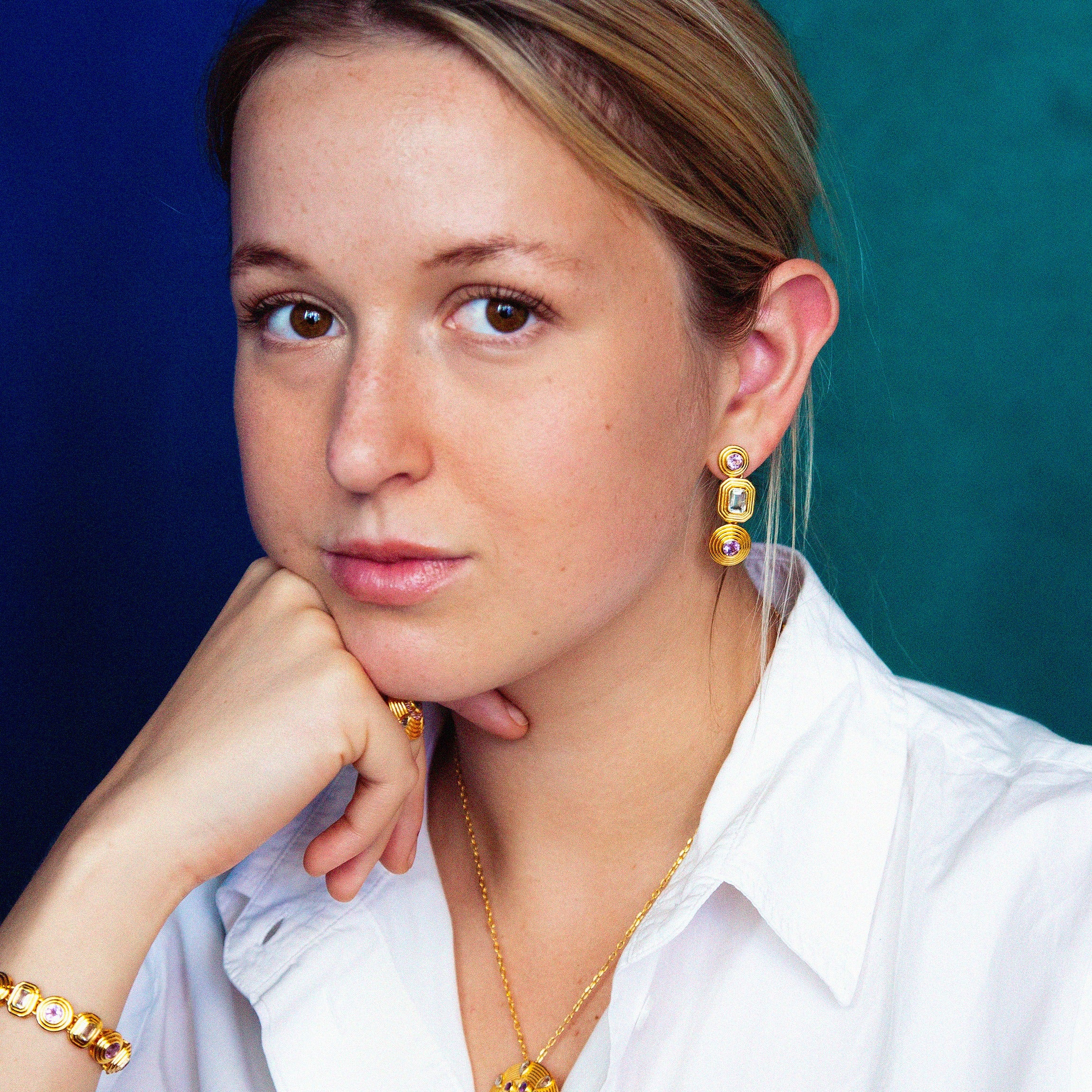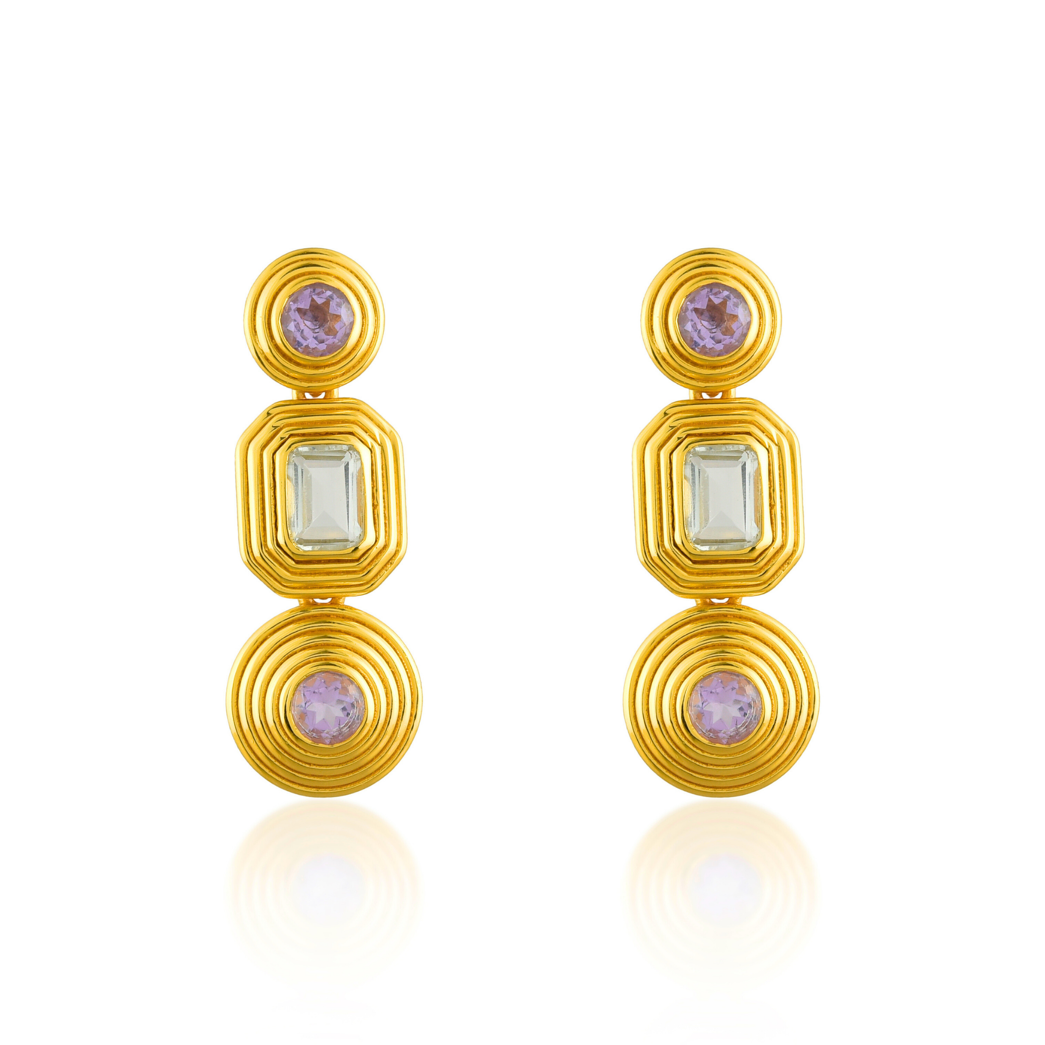 Nila Earrings with Amethyst & Green Amethyst – 24K Gold Plated Sterling Silver