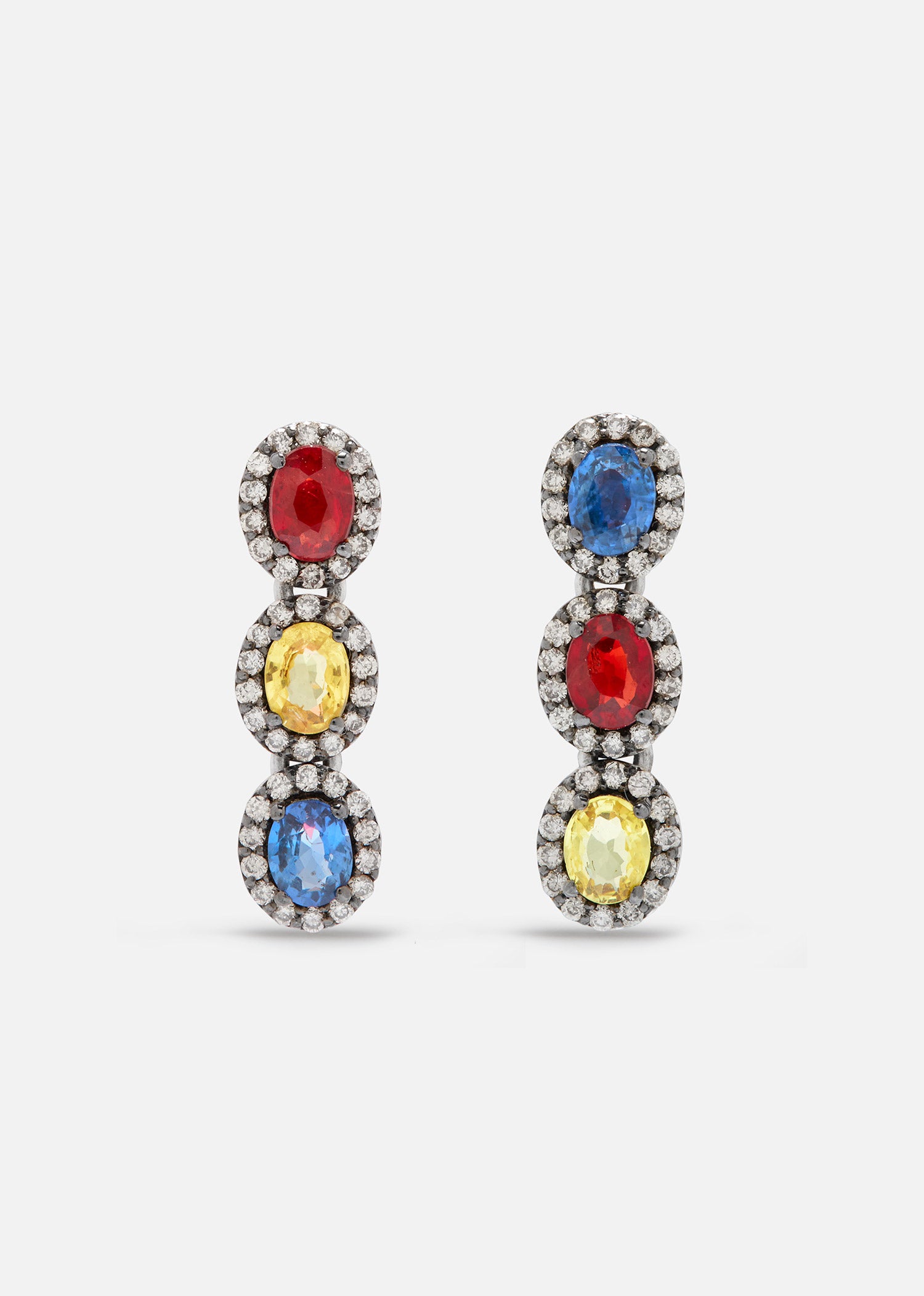 18K White Gold and Black Rhodium Mini Rajasthan Earrings with Multi Sapphires