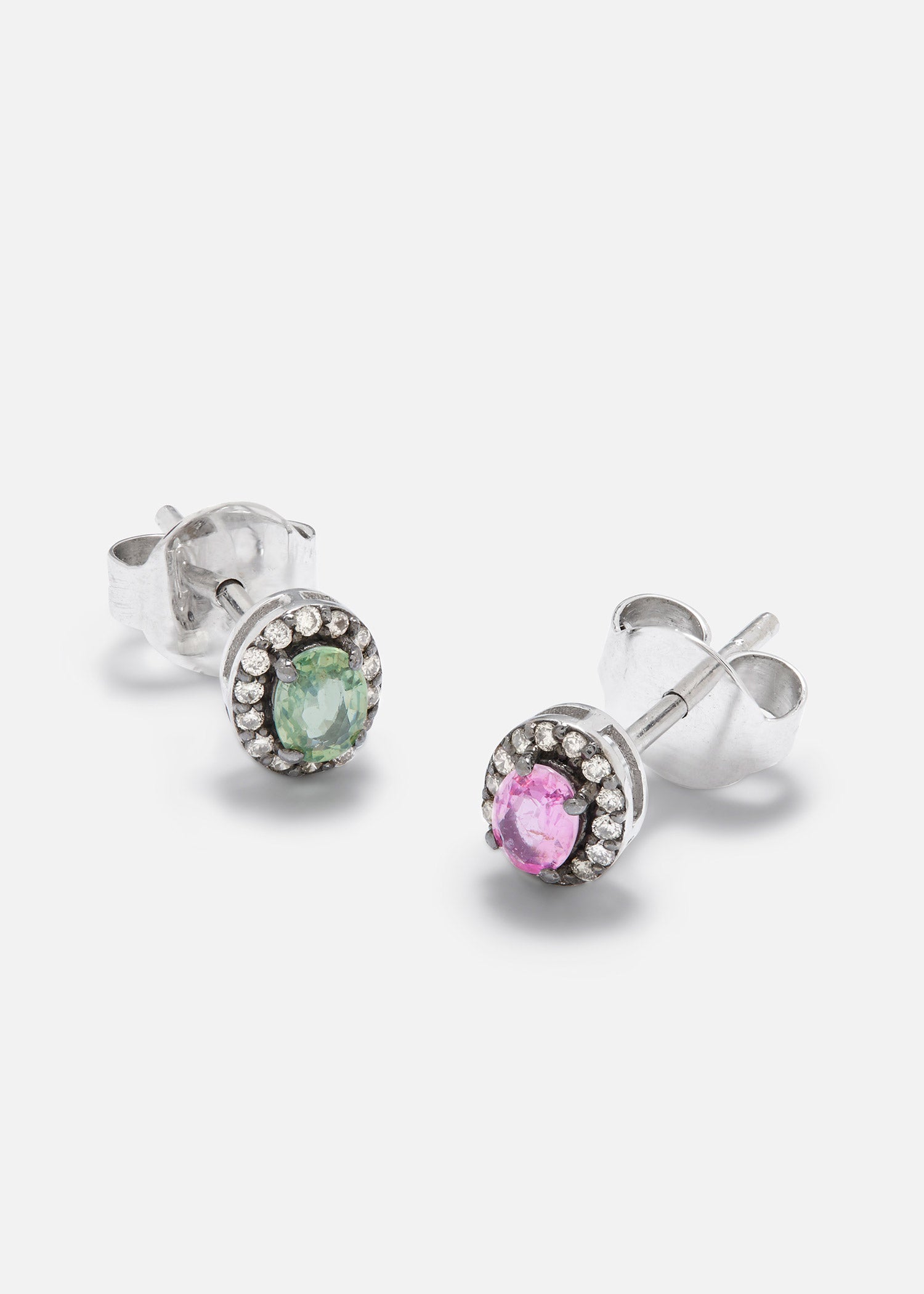 18K White Gold and Black Rhodium Mini Rajasthan Mini Stud Earrings with Multi Sapphires