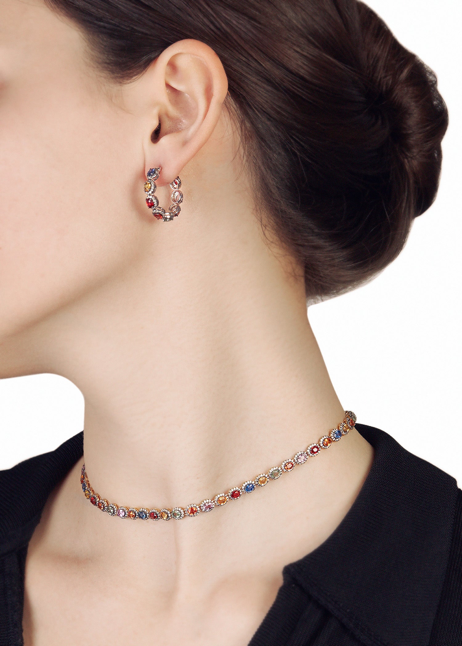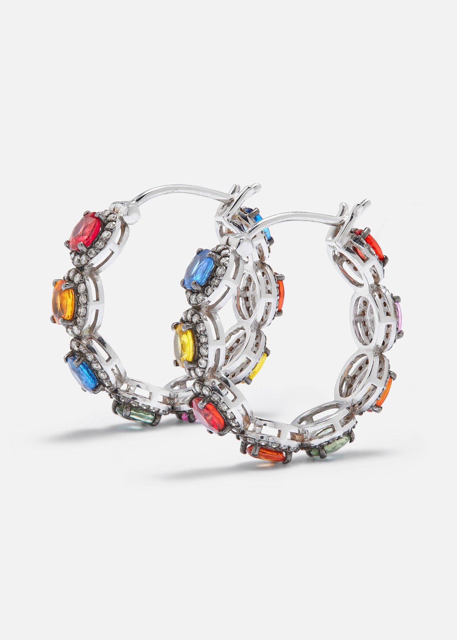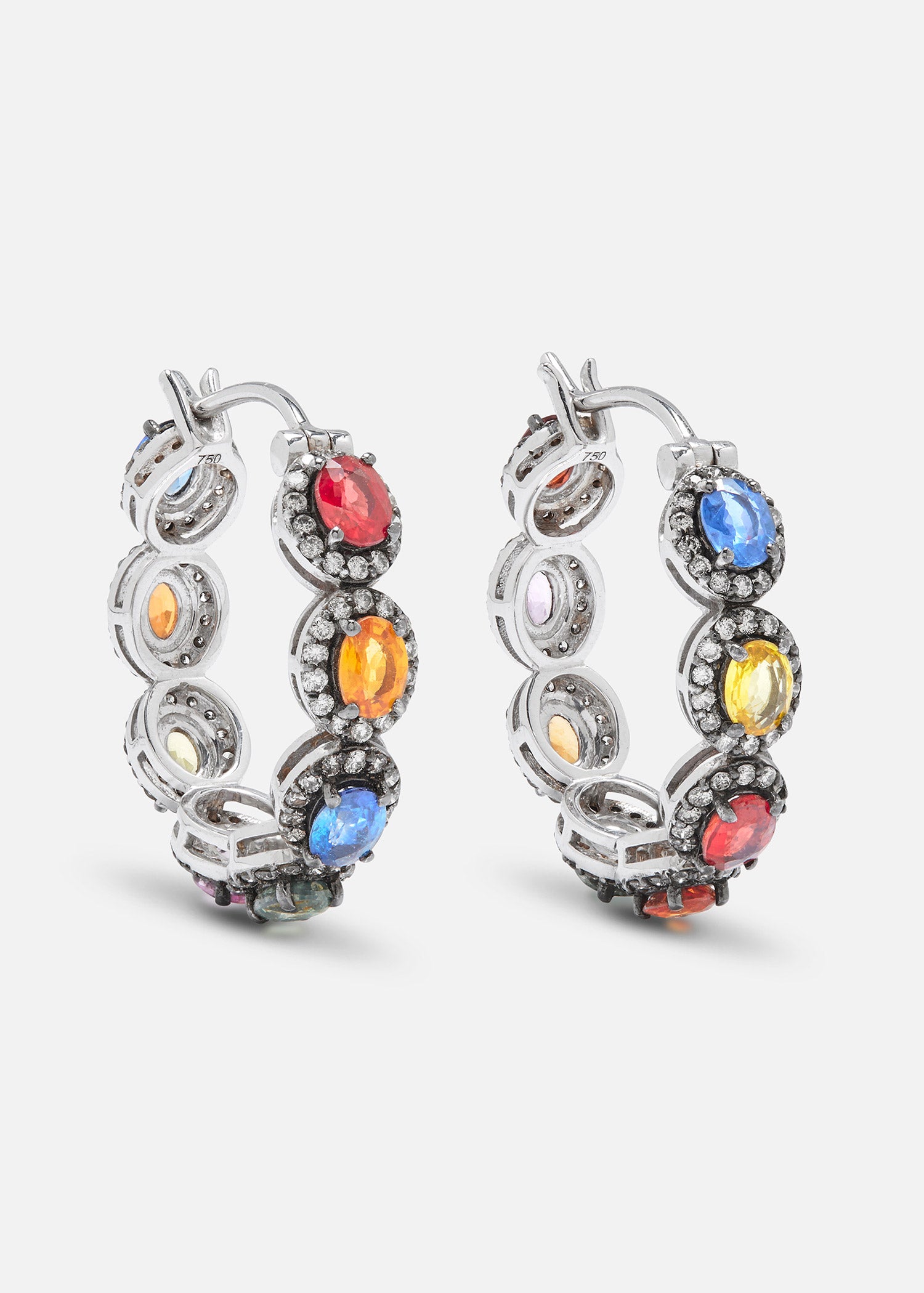 18K White Gold and Black Rhodium Mini Rajasthan Hoop Earrings with Multi Sapphires