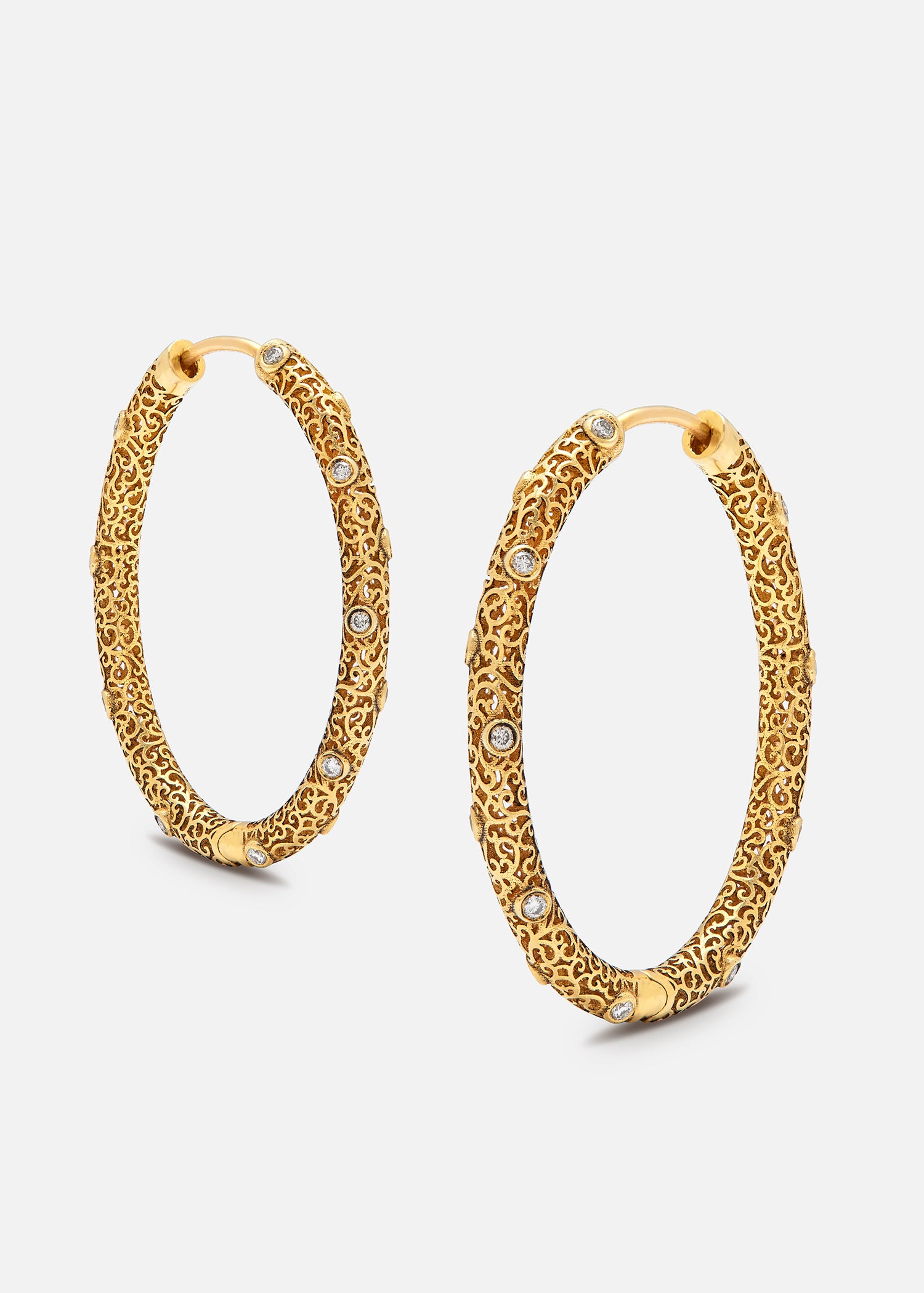18K Yellow Gold and Diamonds Jali Hoops