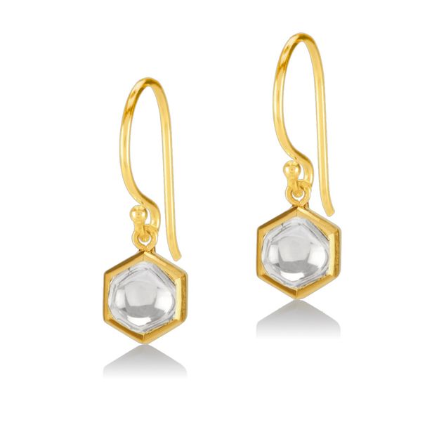 18K Gold Kundan Hexagon Drop Earring with Polki Diamonds