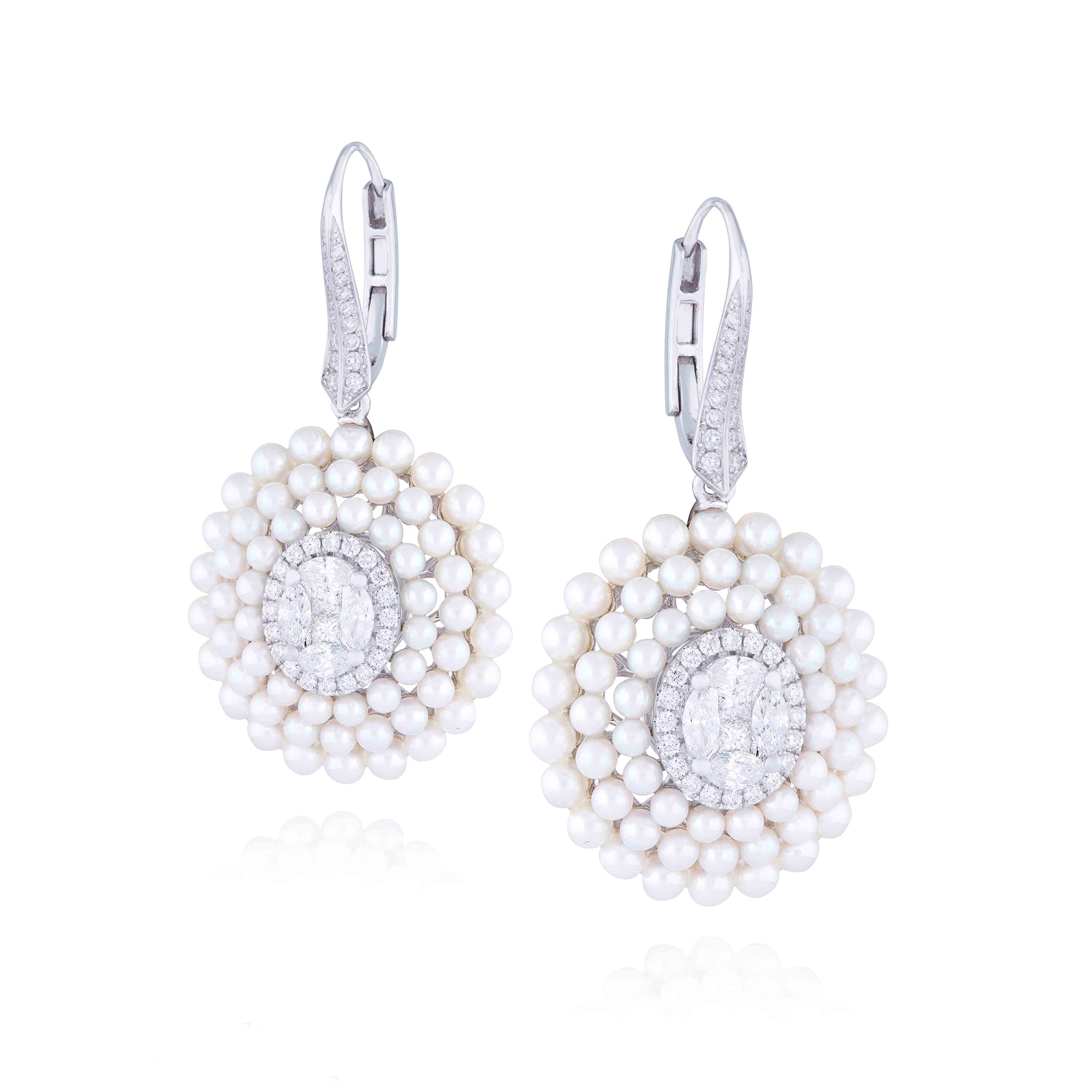 Pearl 2.76 carat, Rose Cut Diamonds 0.50 carat, Marquise Cut Diamonds 0.66 carat, Square Princess Cut Diamonds 0.24 carat