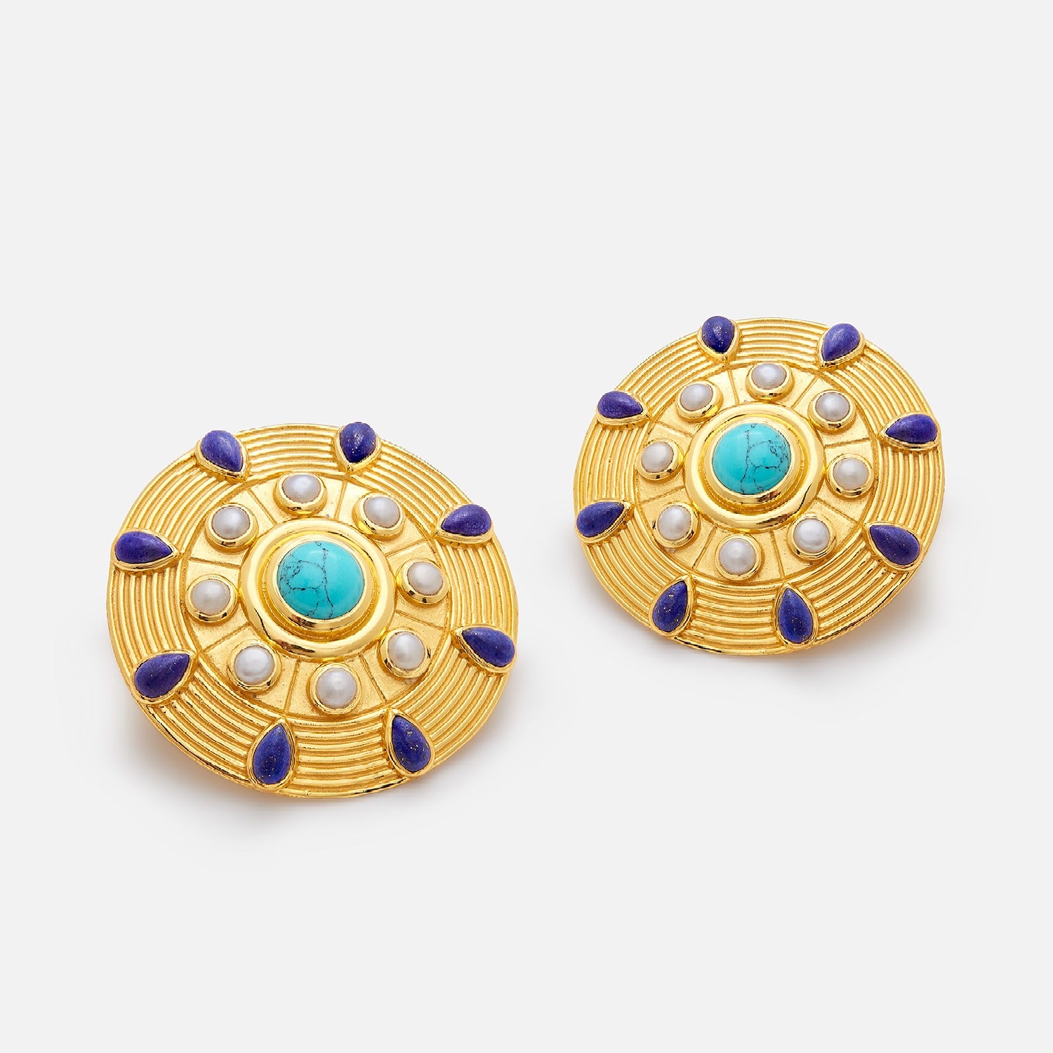 Amulet Earrings with Turquoise, Lapis & Pearl – 24K Gold-Plated Sterling Silver
