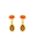 The earrings feature vibrant red onyx, smokey quartz and pearl gemstones set in a sleek gold-plated drop design. Perfect for wearing alone as a statement or paired with other pieces from the Anya Collection for layered, curated styling.