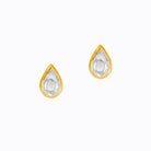 18K Gold Kundan Teardrop Stud Earring with Polki Diamonds