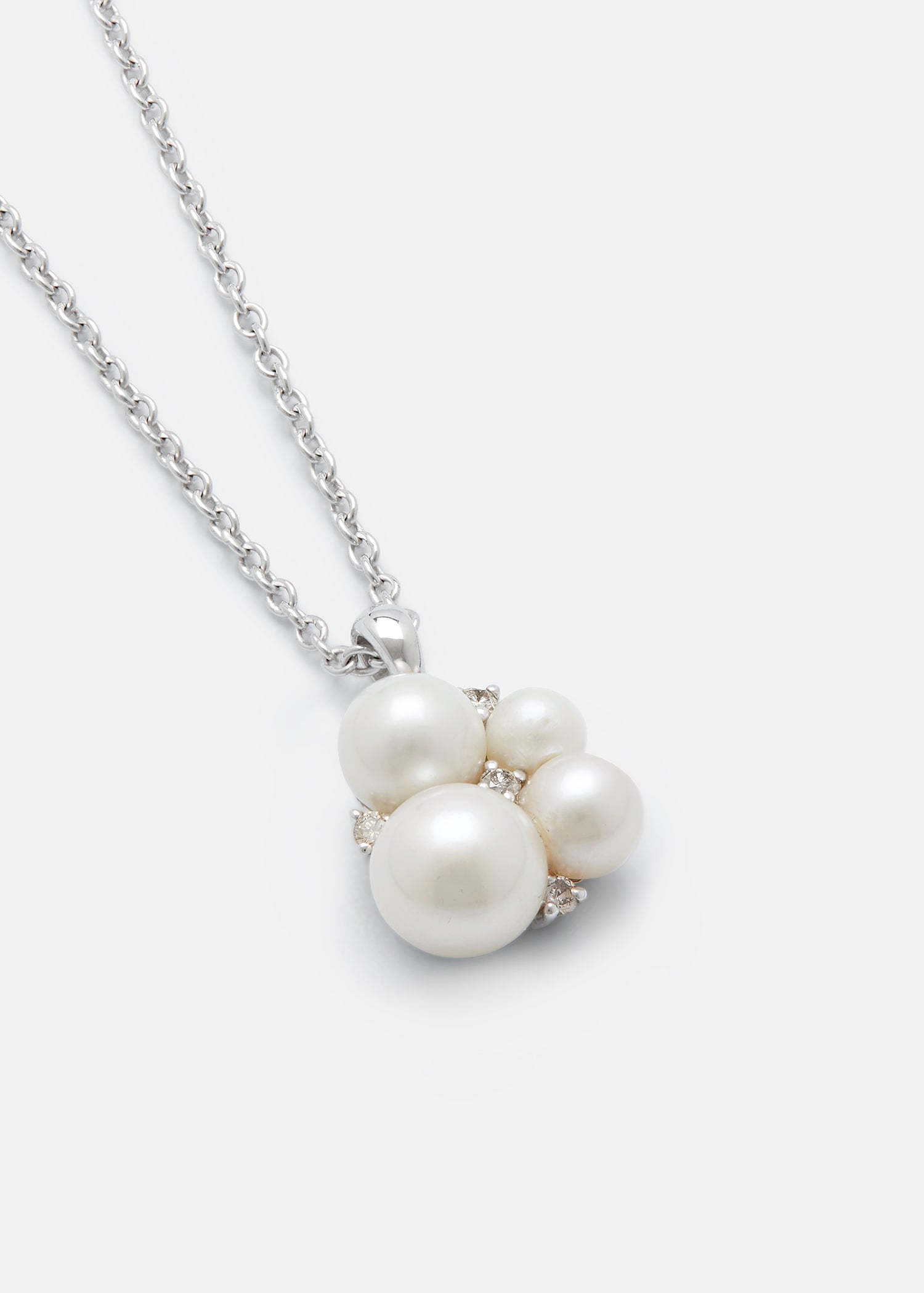 18K White Gold Lily Necklace with Pearls and Diamonds