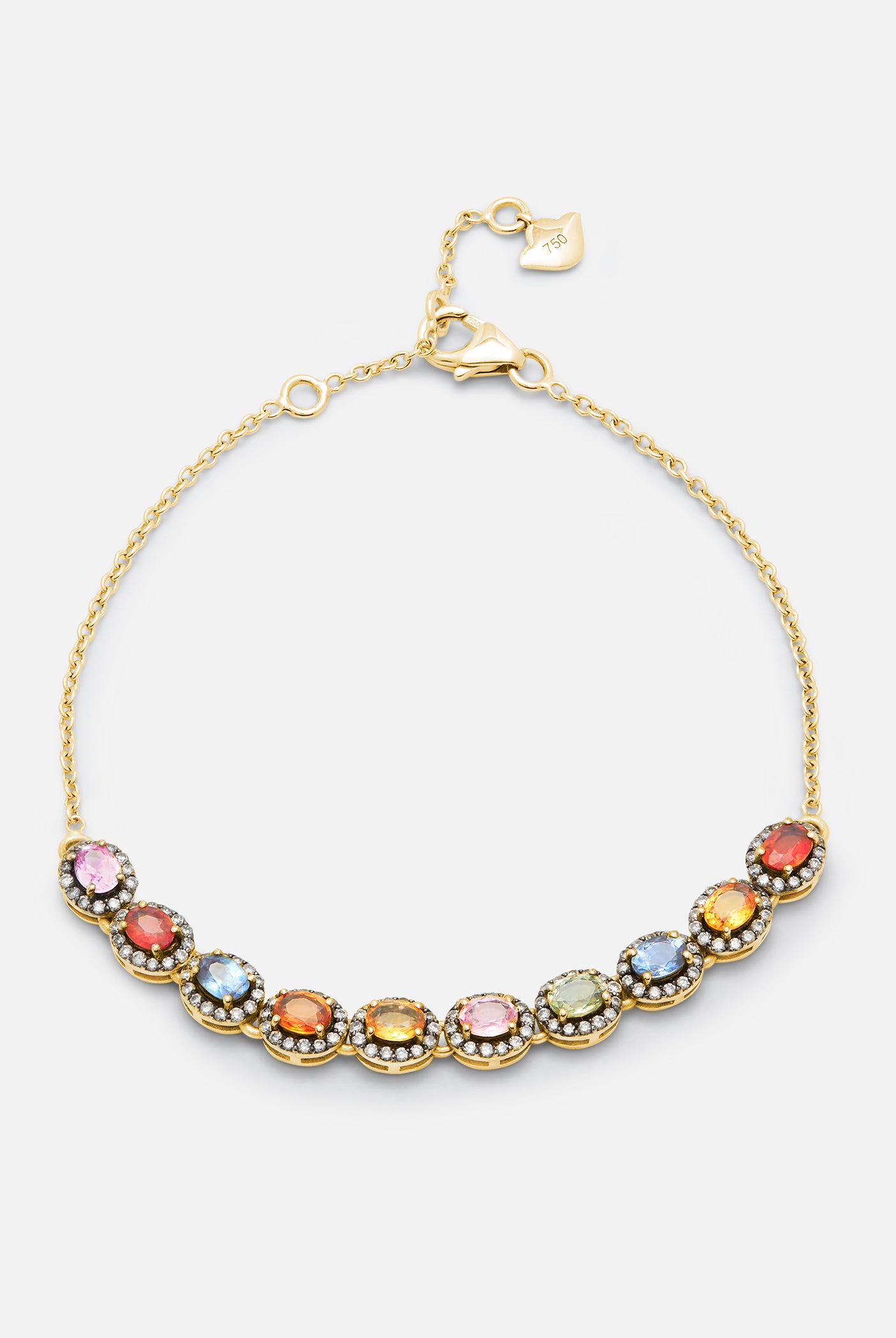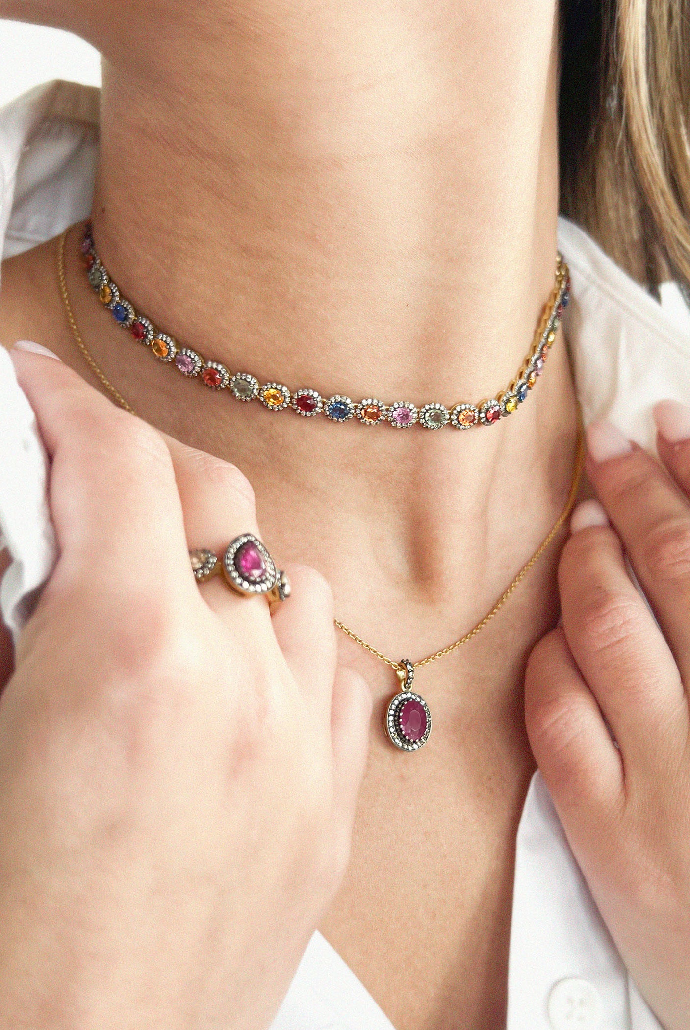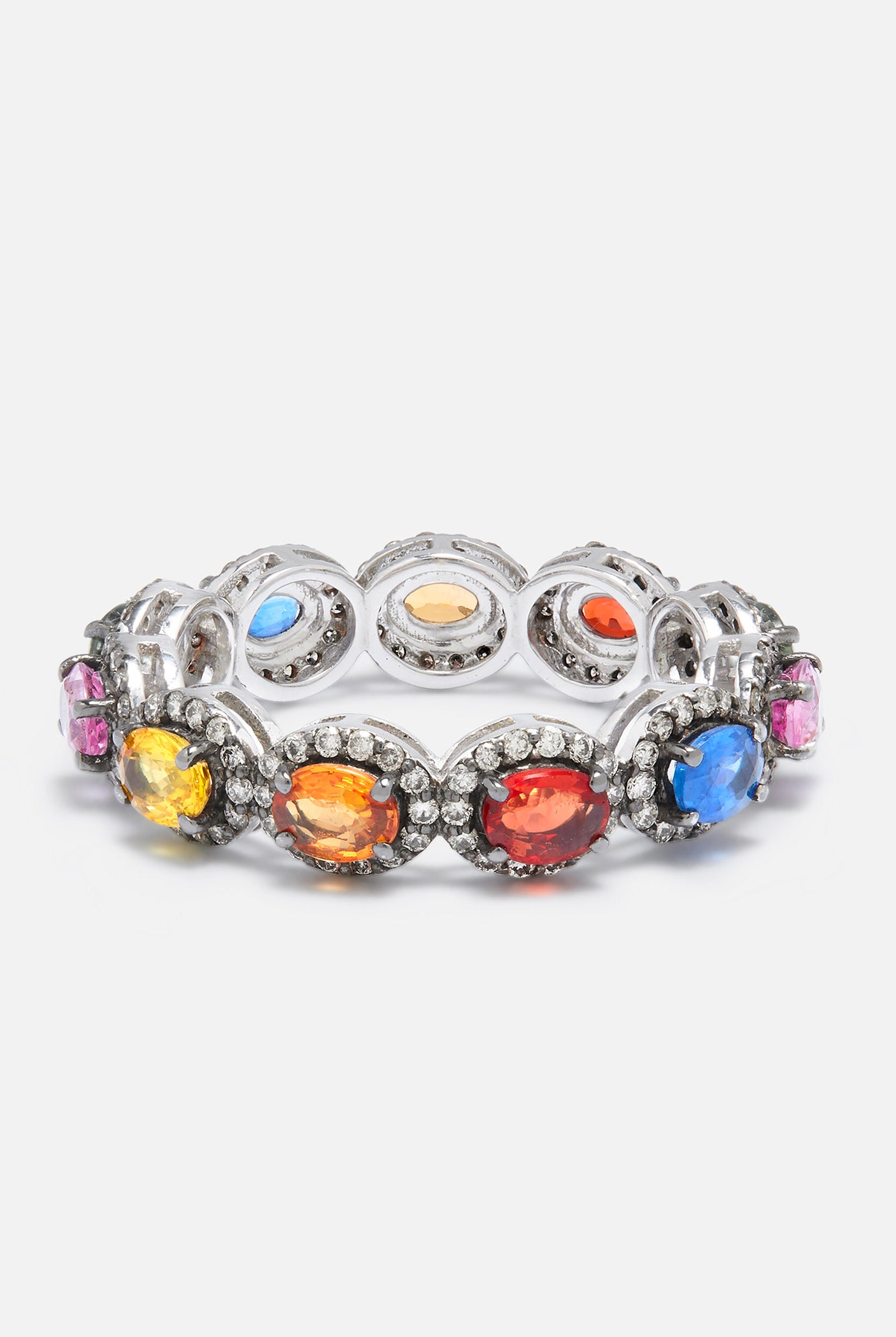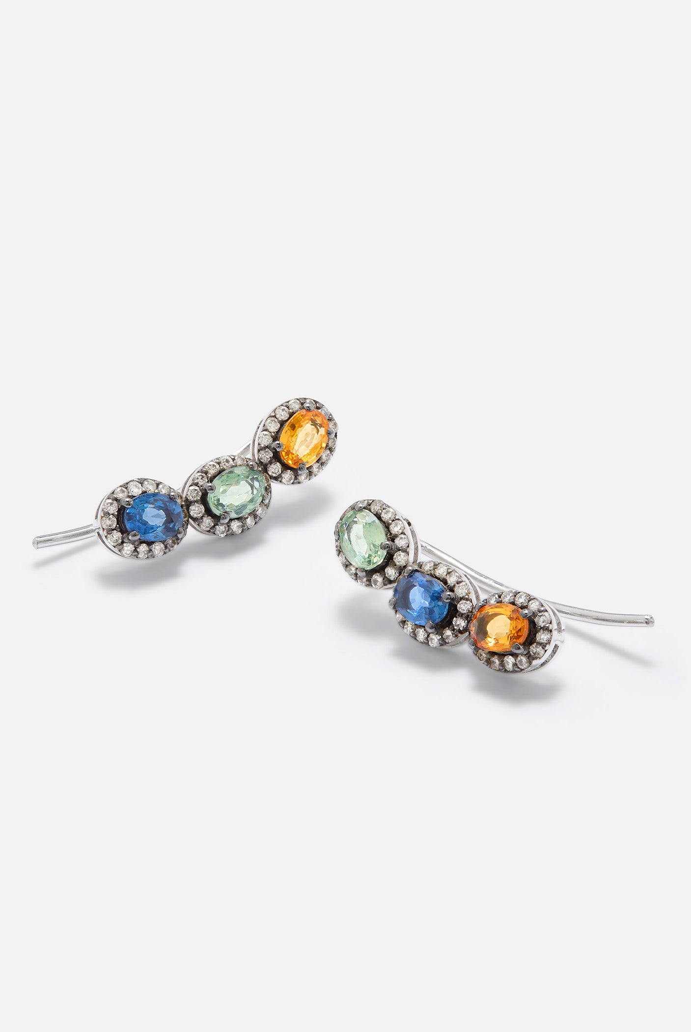 Discover the enchanting allure of Mini Rajasthan, a collection that pays homage to the timeless beauty of Rajasthan's architecture and the rich character of its people. Each piece in this vibrant collection features a stunning array ofmulti-colouredsapphires, delicately set in exquisite 18k gold with a touch of black rhodium. This nod to traditional designs found in oxidized silver and gold mixshowcasesthe perfect blend of modern elegance and the classic essence of Rajasthan's heritage.
