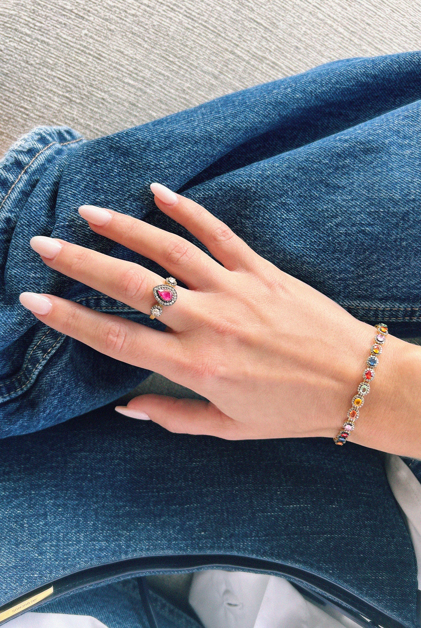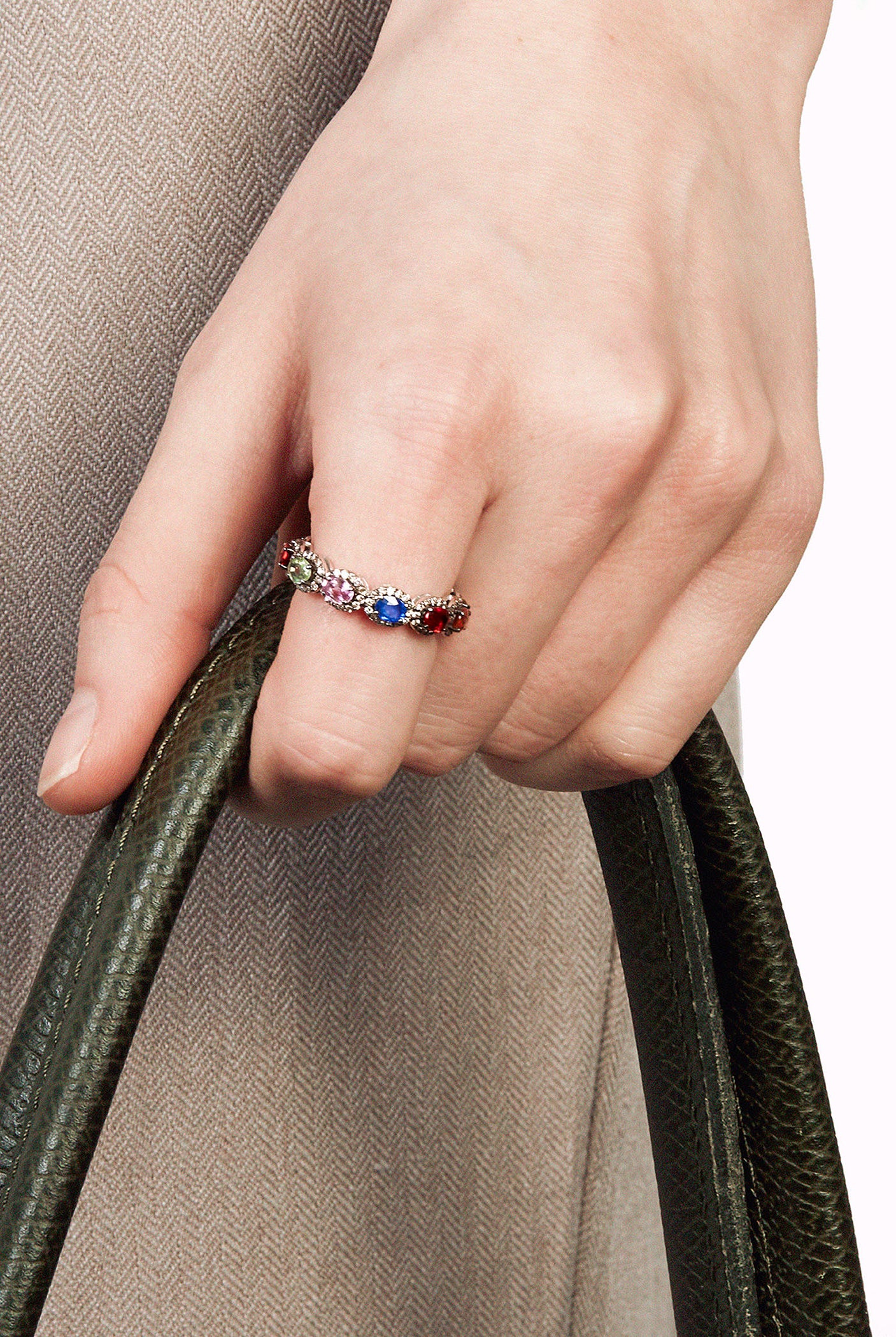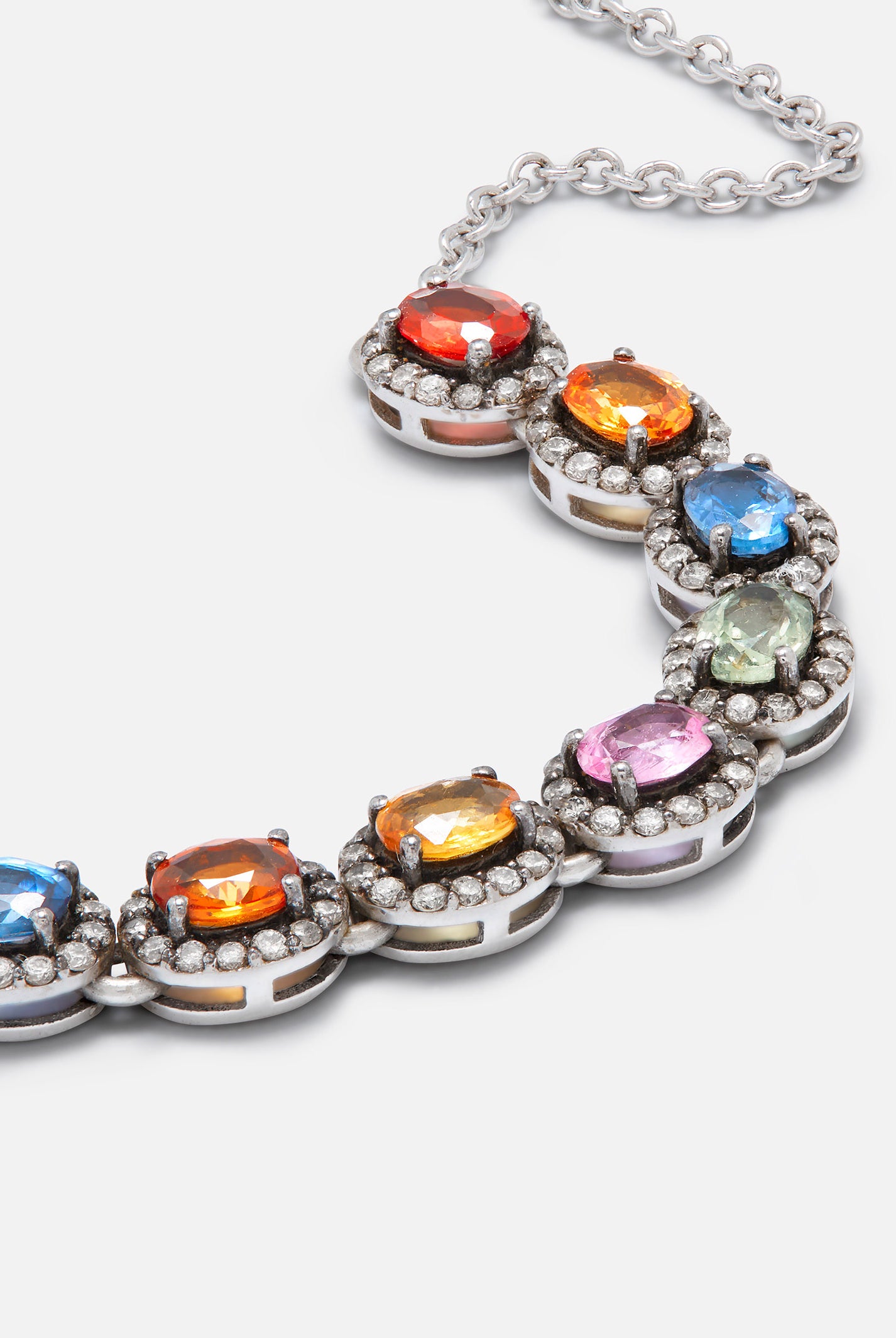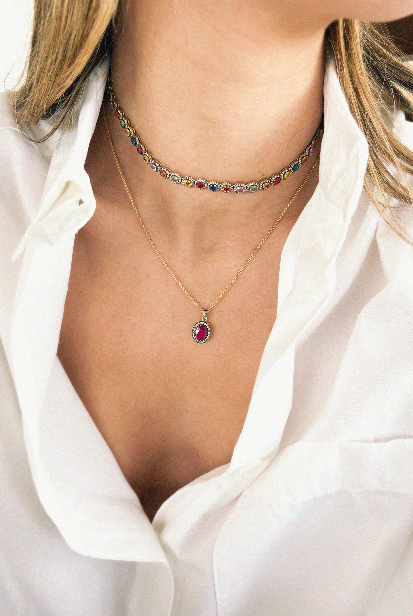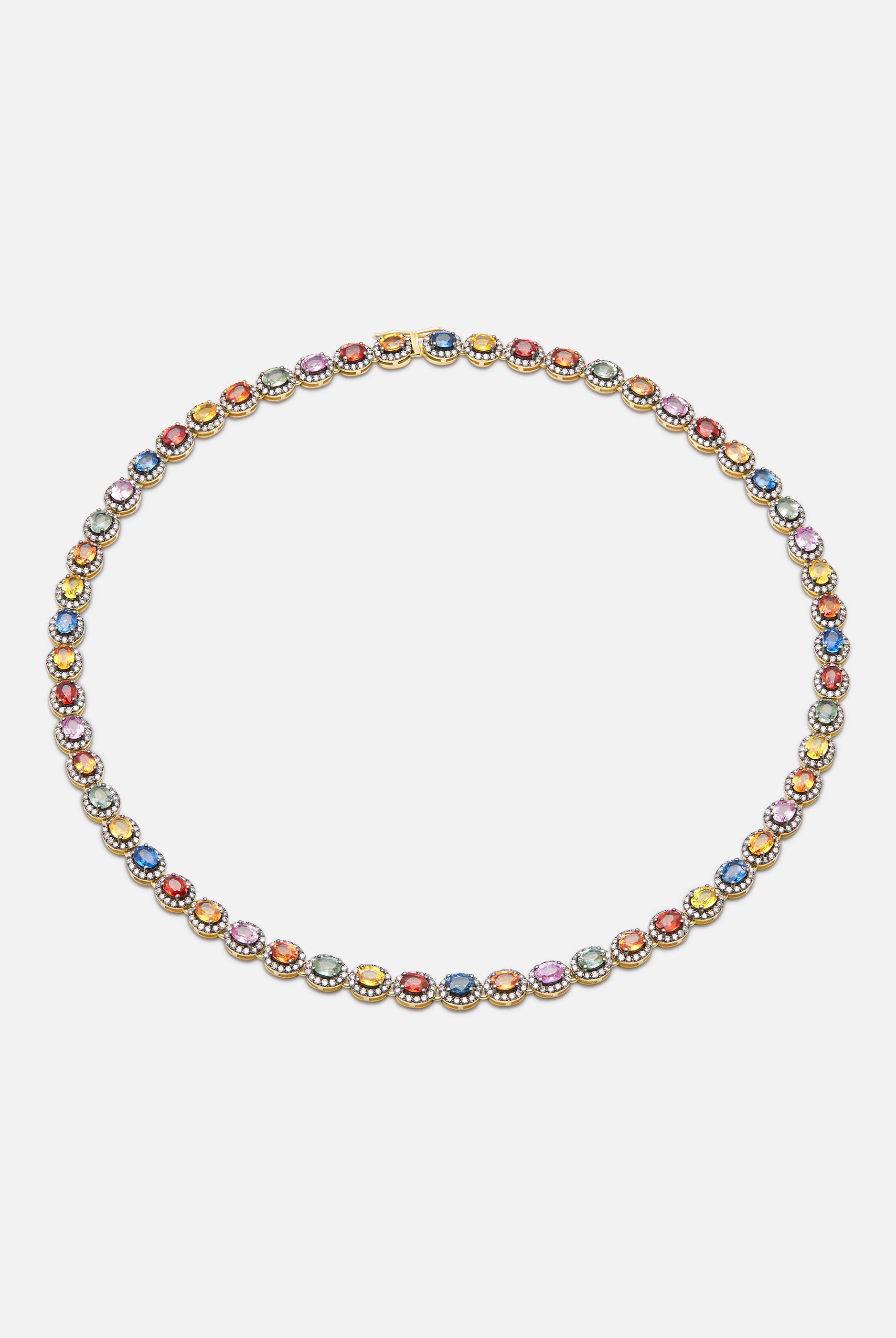 Discover the enchanting allure of Mini Rajasthan, a collection that pays homage to the timeless beauty of Rajasthan's architecture and the rich character of its people. Each piece in this vibrant collection features a stunning array ofmulti-colouredsapphires, delicately set in exquisite 18k gold with a touch of black rhodium. This nod to traditional designs found in oxidized silver and gold mixshowcasesthe perfect blend of modern elegance and the classic essence of Rajasthan's heritage.