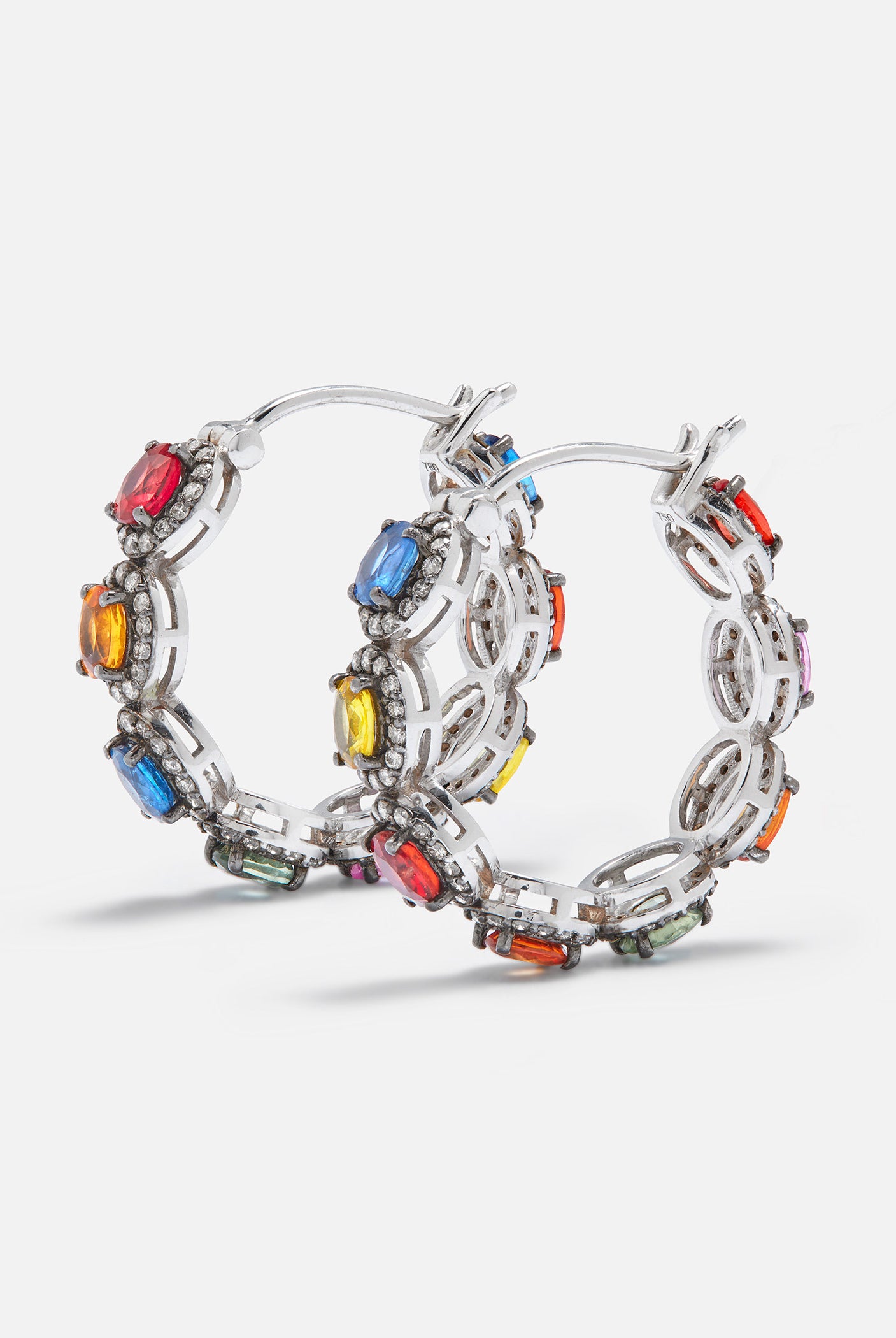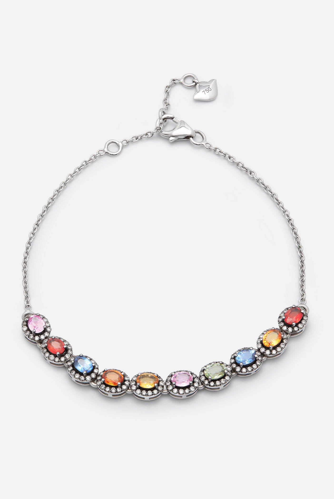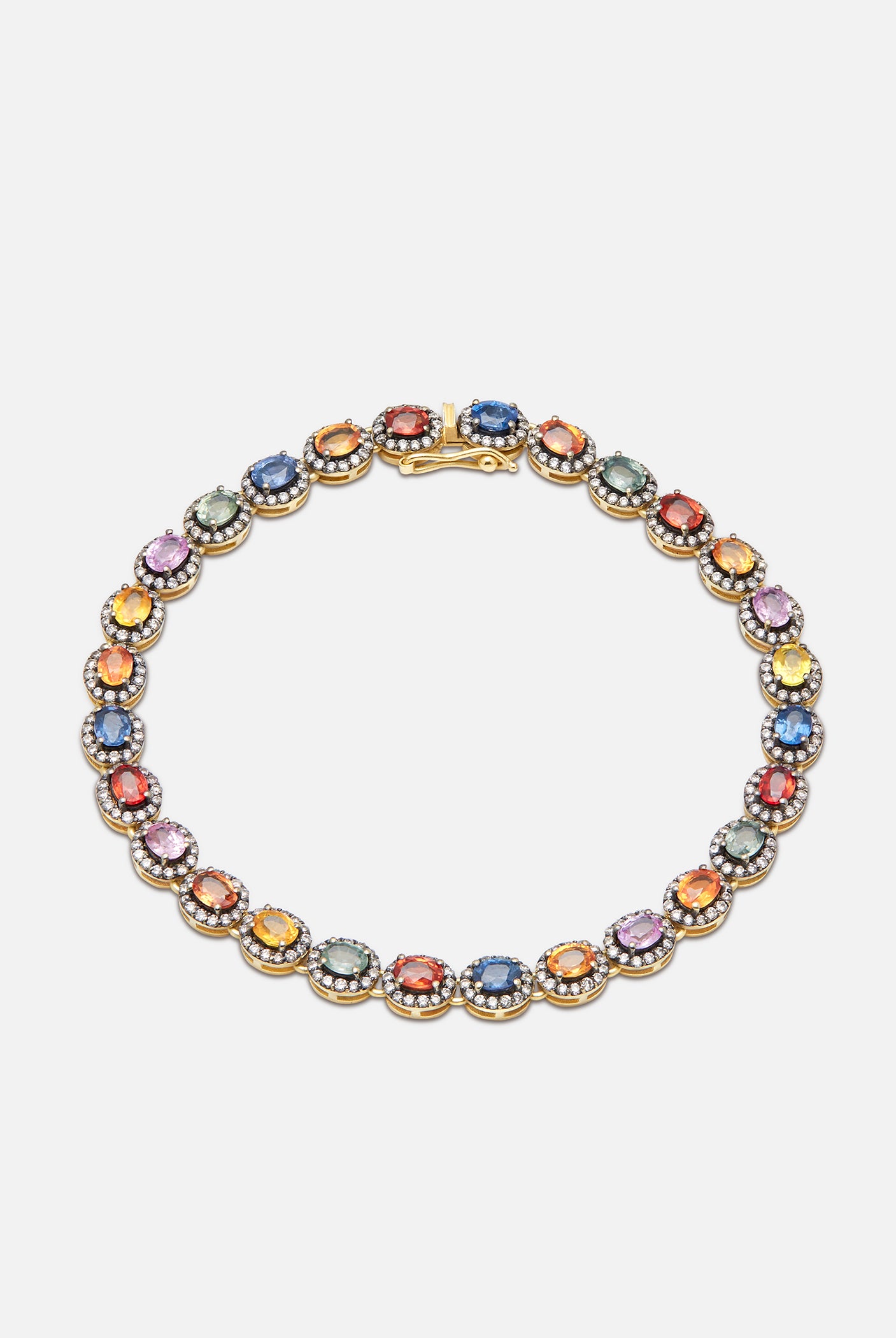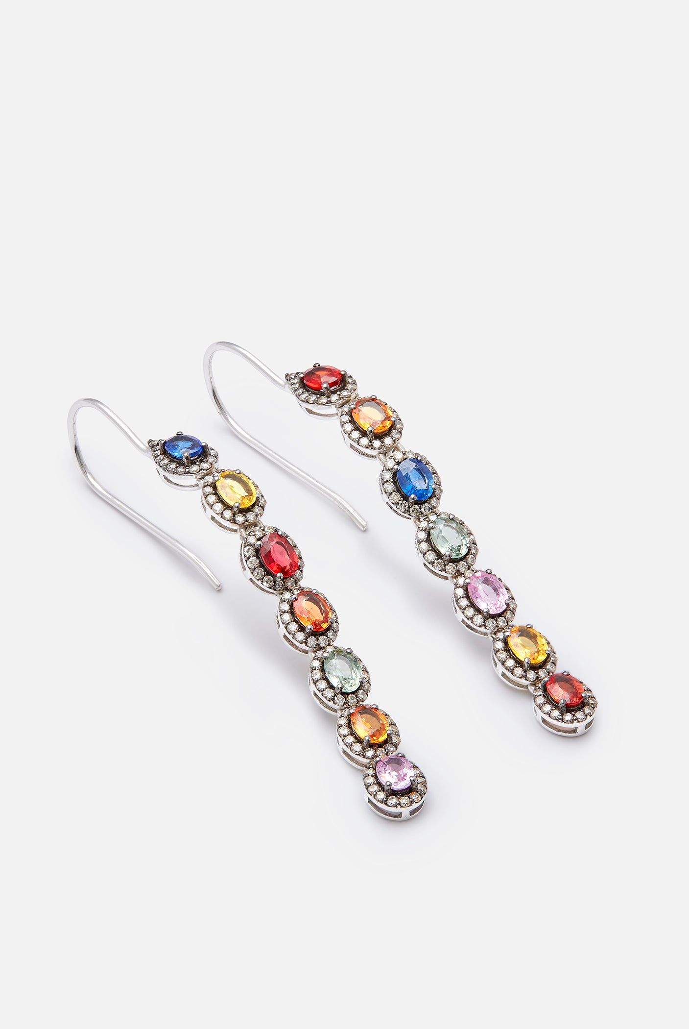 Discover the enchanting allure of Mini Rajasthan, a collection that pays homage to the timeless beauty of Rajasthan's architecture and the rich character of its people. Each piece in this vibrant collection features a stunning array of multi-coloured sapphires, delicately set in exquisite 18k gold with a touch of black rhodium. This nod to traditional designs found in oxidized silver and gold mix showcases the perfect blend of modern elegance and the classic essence of Rajasthan's heritage.