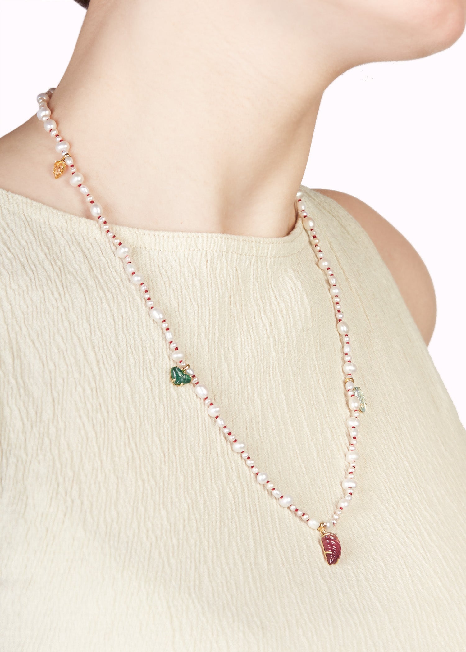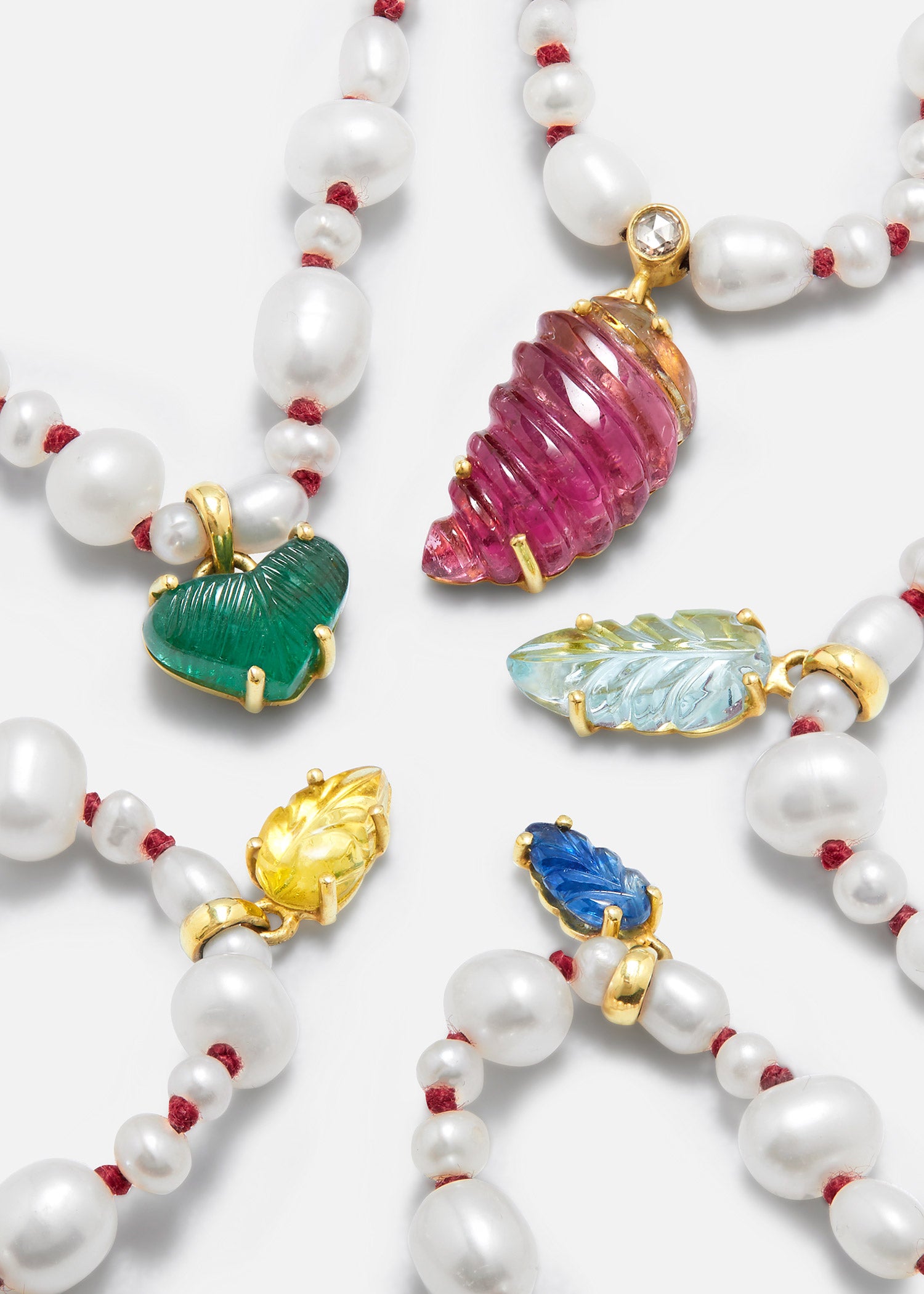 Translated from Arabic; Muna means a wish or desire. Each piece of the Muna collection uses mismatched pearls and carved precious stones, weaving the tale of traditional artisan craft. The perfect pieces to be worn both day and night, they can stand on their own, or be layered beautifully to enhance existing pieces.