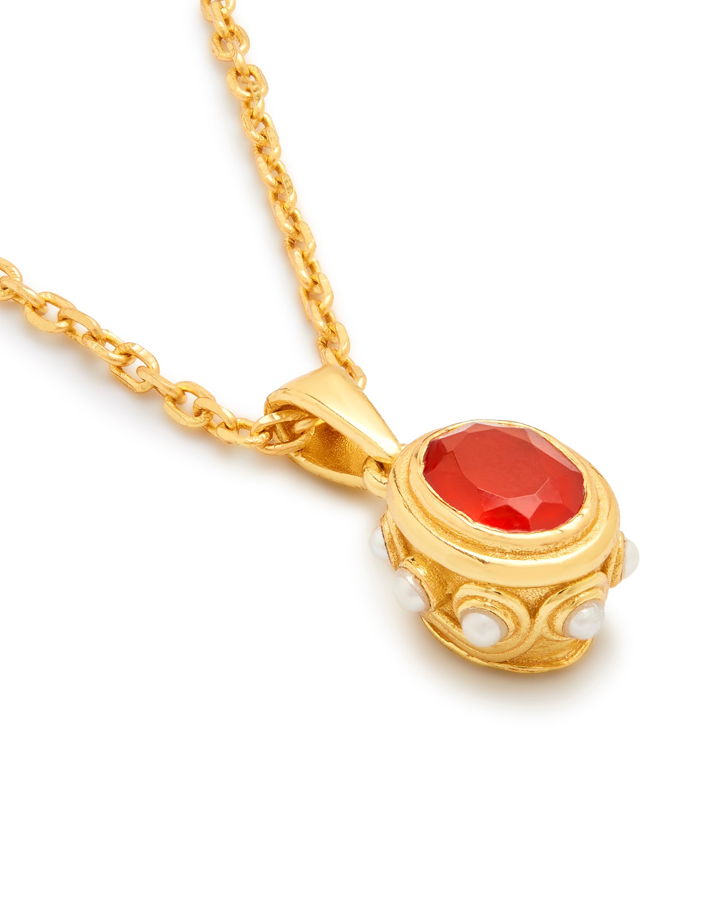 Oval Anya Necklace with Red Onyx & Pearl – 24K Gold-Plated Sterling Silver