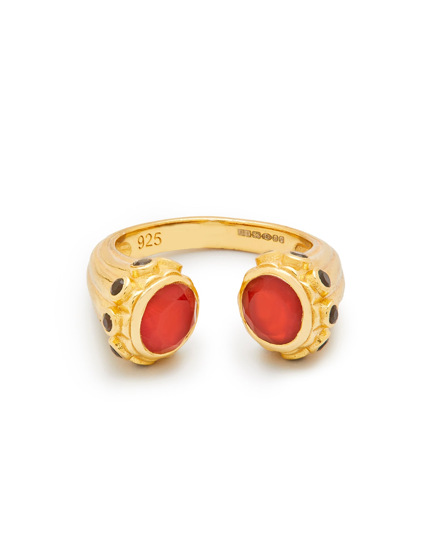 Anya Crescent Ring with Red Onyx and Smokey Quartz – 24K Gold-Plated Sterling Silver