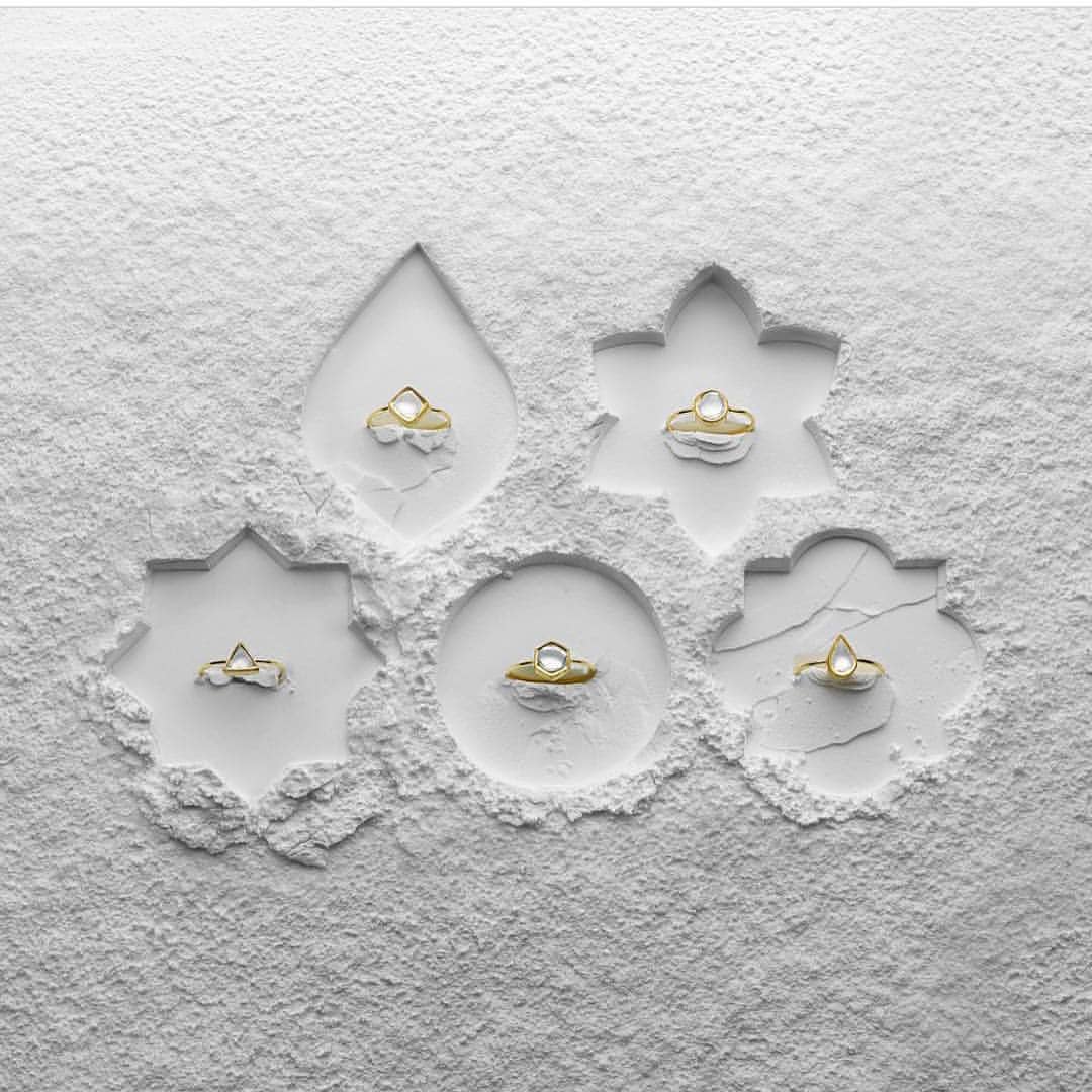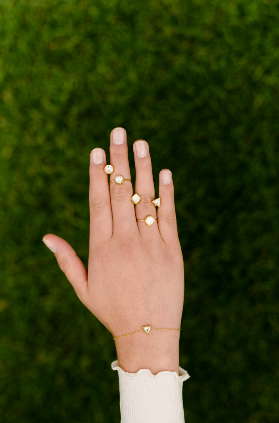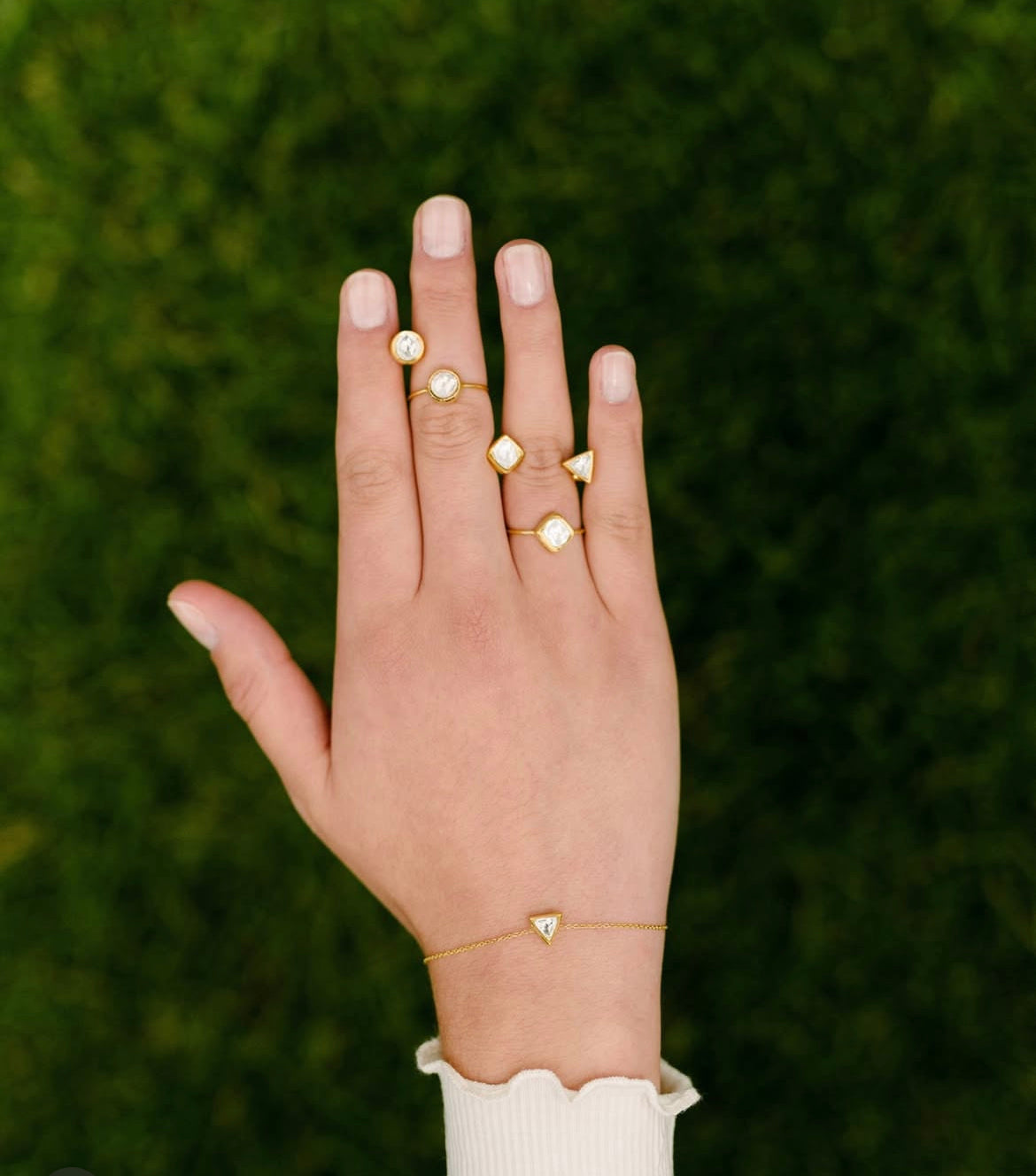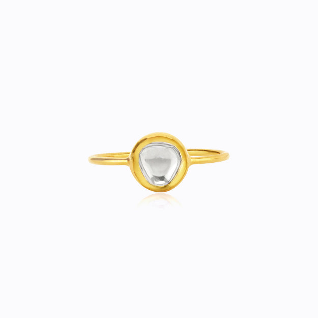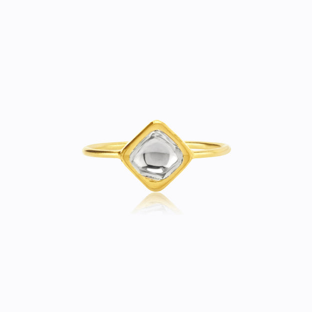 18K Gold Kundan Rhombus Ring with Polki Diamond
