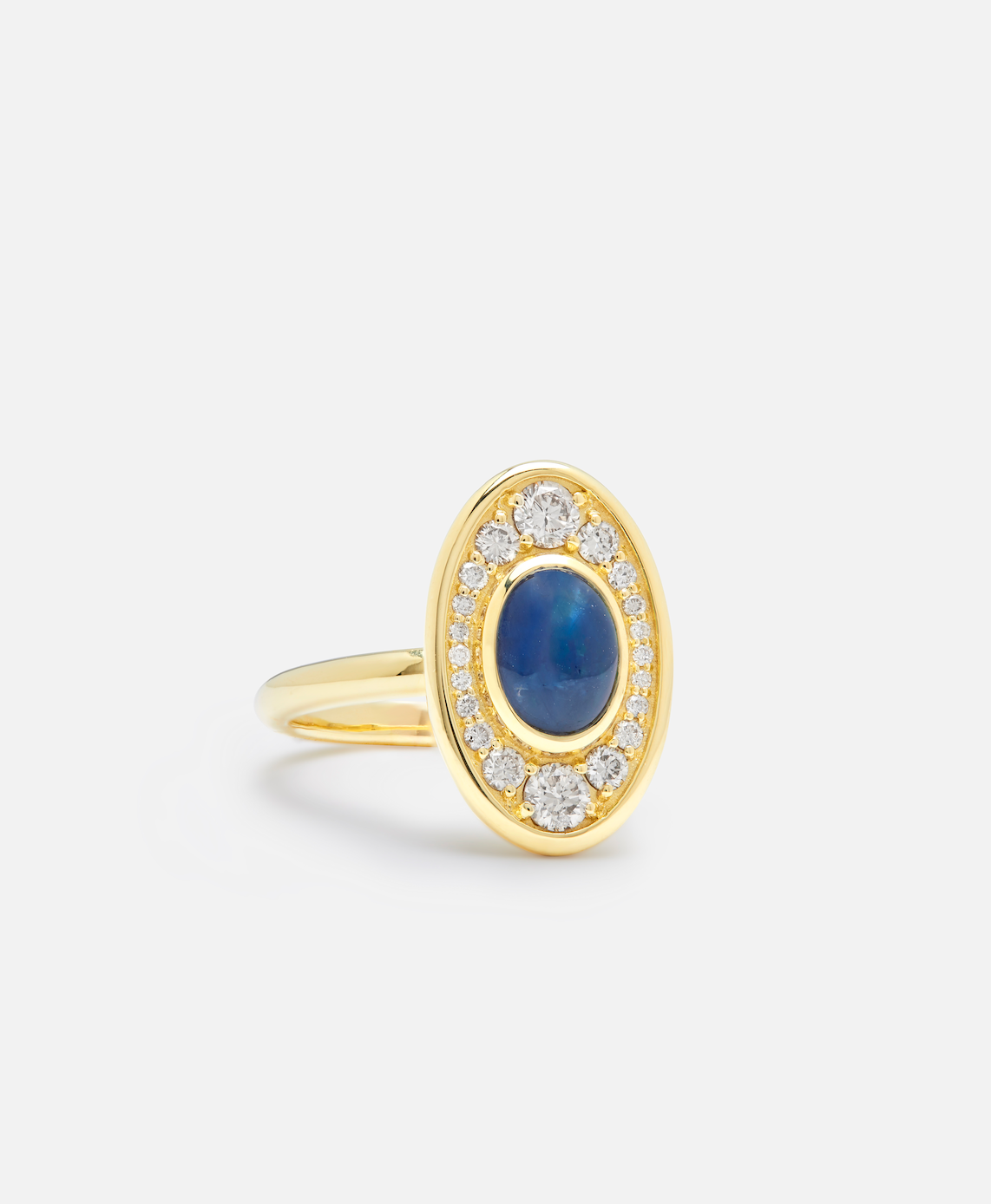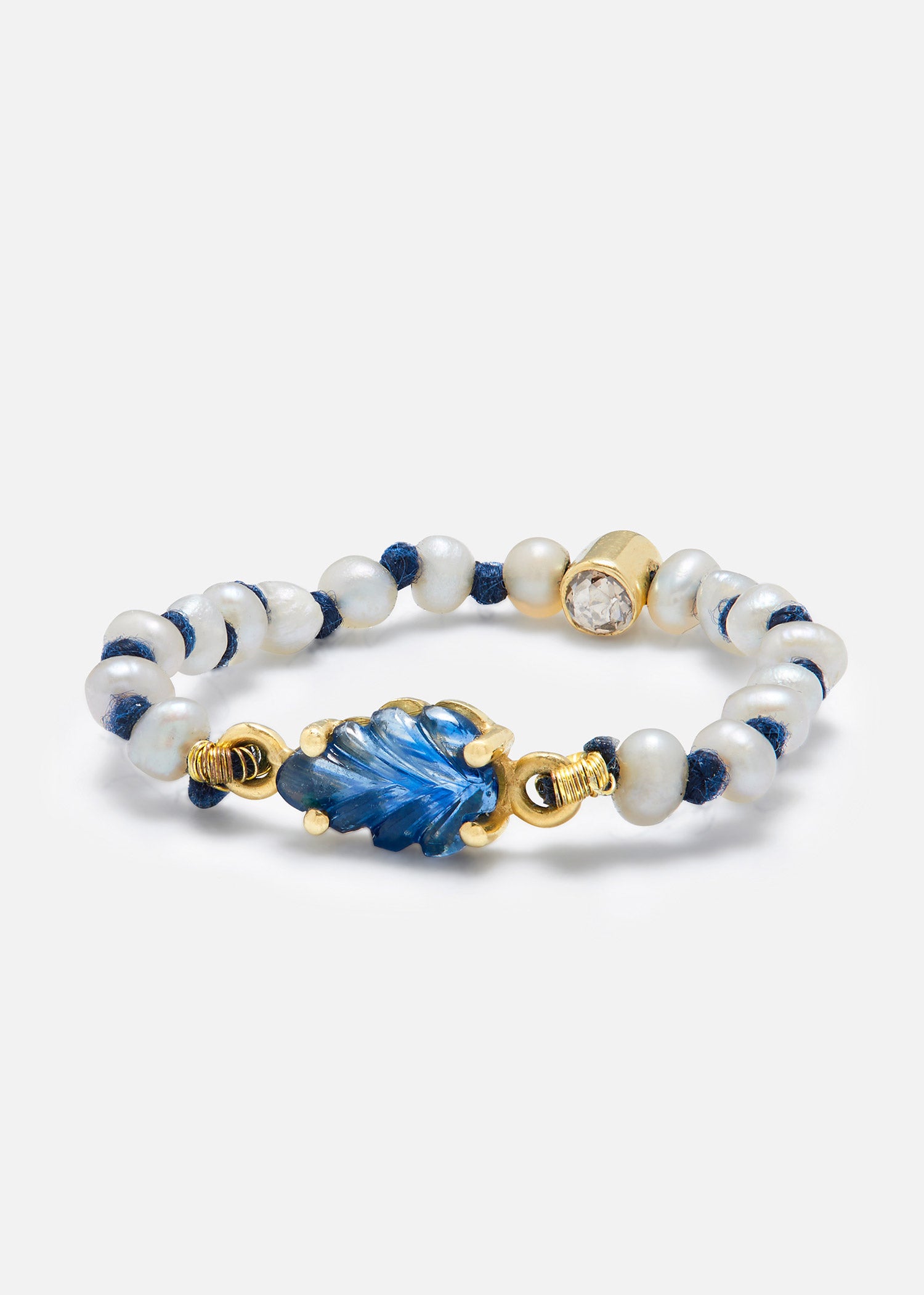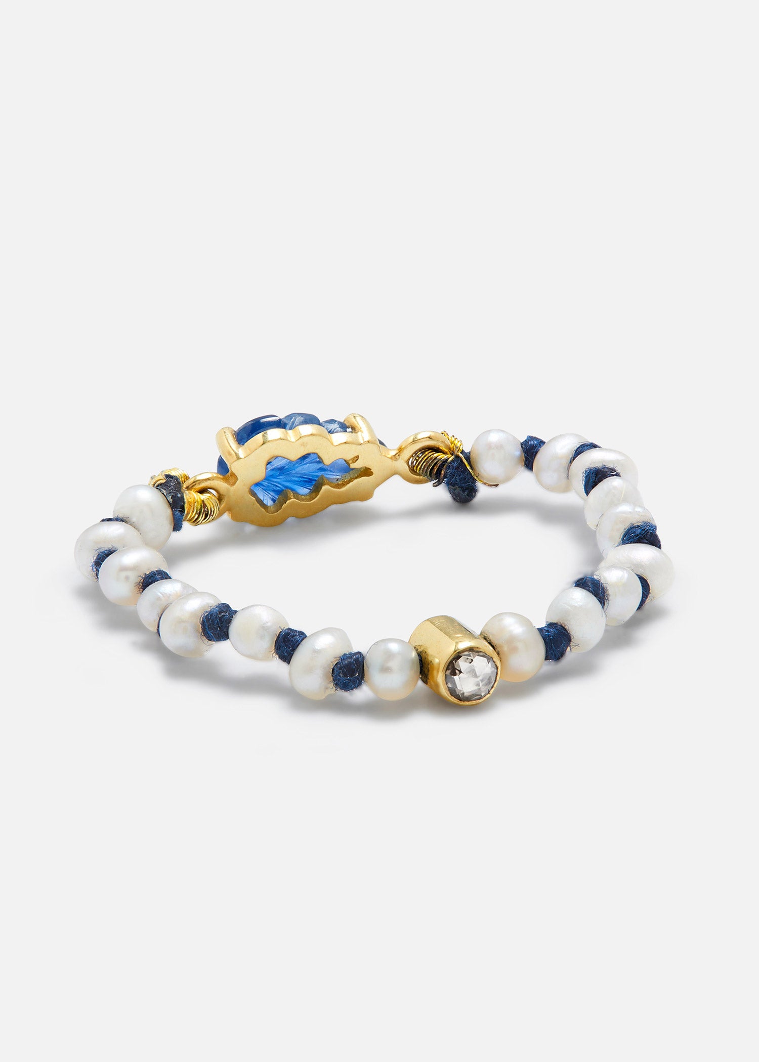 18k Yellow Gold Muna Pearl Ring with Blue Sapphire