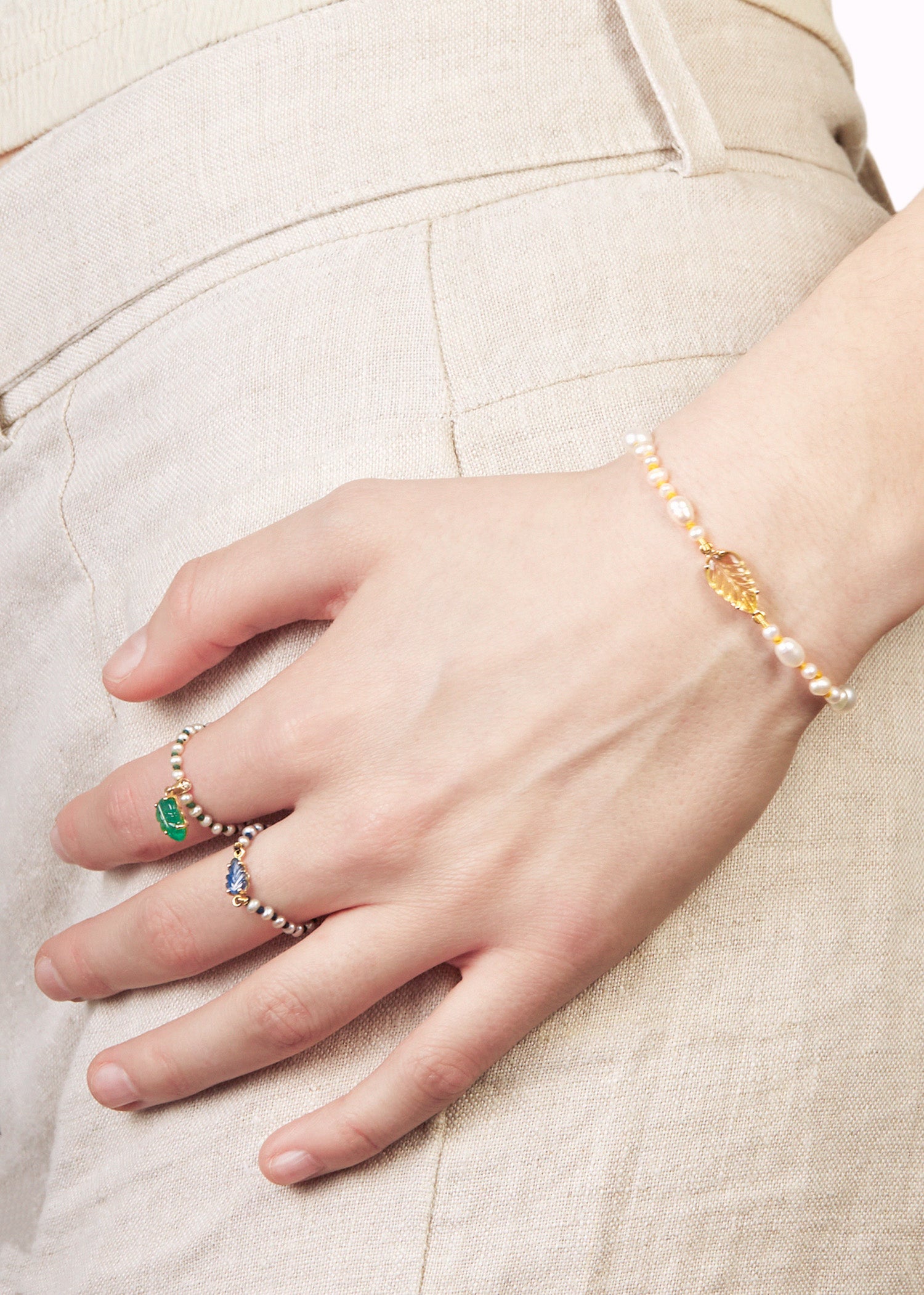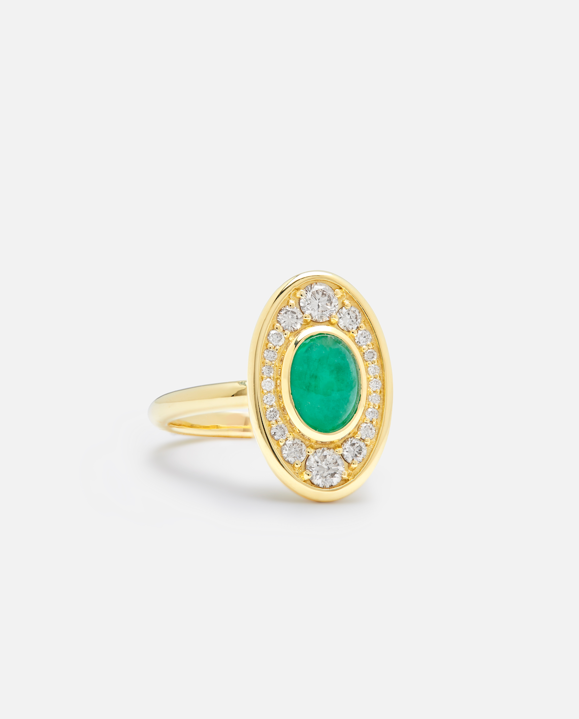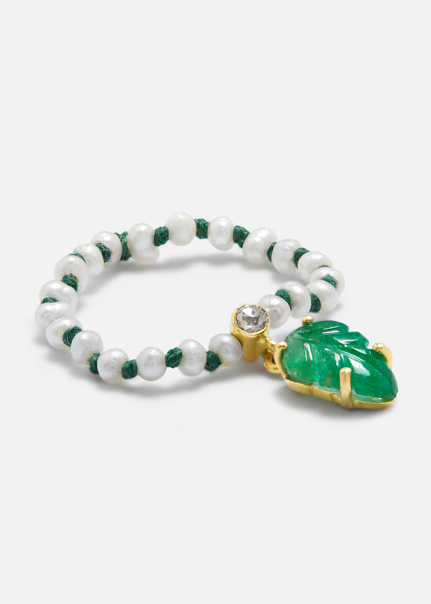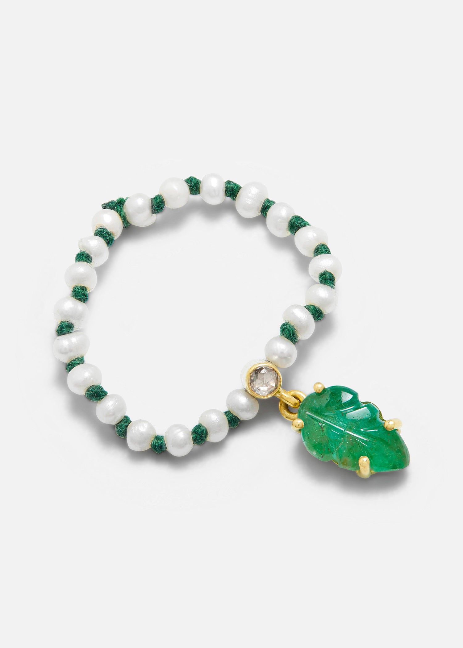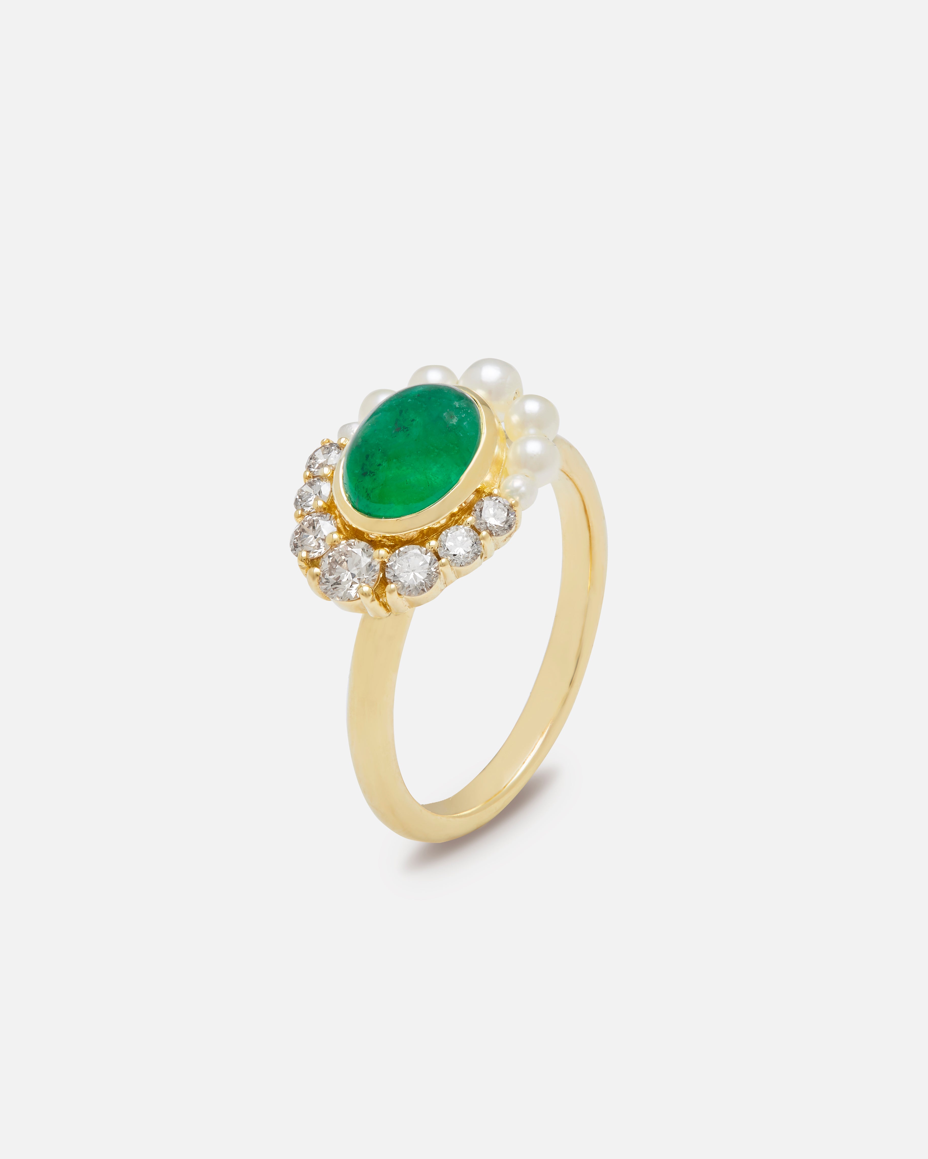 18k Yellow Gold Muna Pearl Ring with Emerald