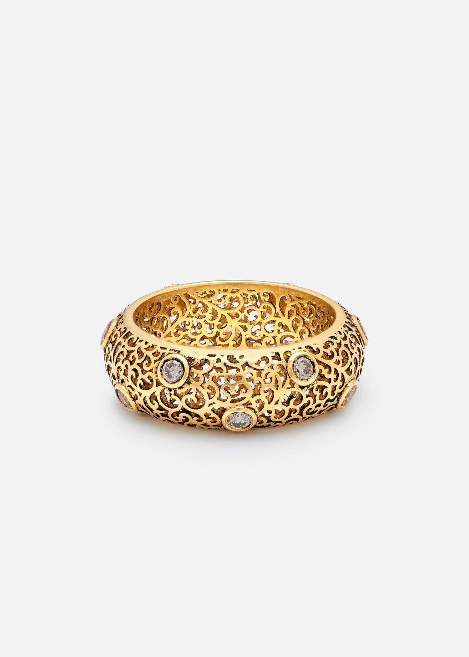 18K Yellow Gold and Diamonds Jali Thin Ring