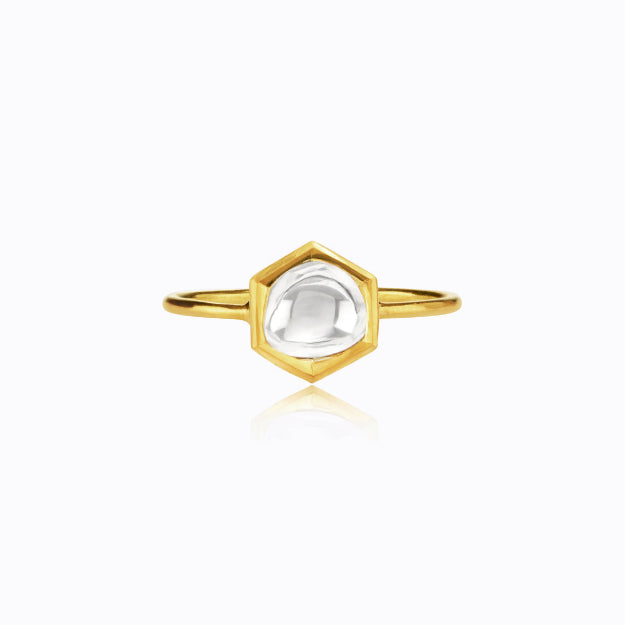 18K Gold Kundan Hexagon Ring with Polki Diamond