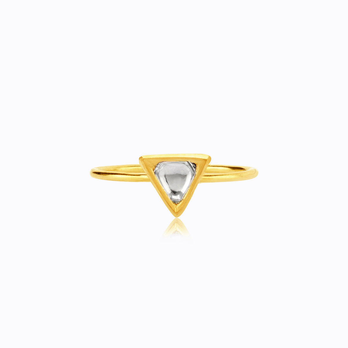 18K Gold Kundan Vintage Triangle Ring with Polki Diamonds