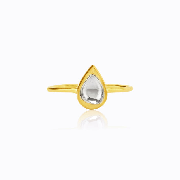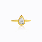 18K Gold Kundan Vintage Teardrop Ring with Polki Diamond