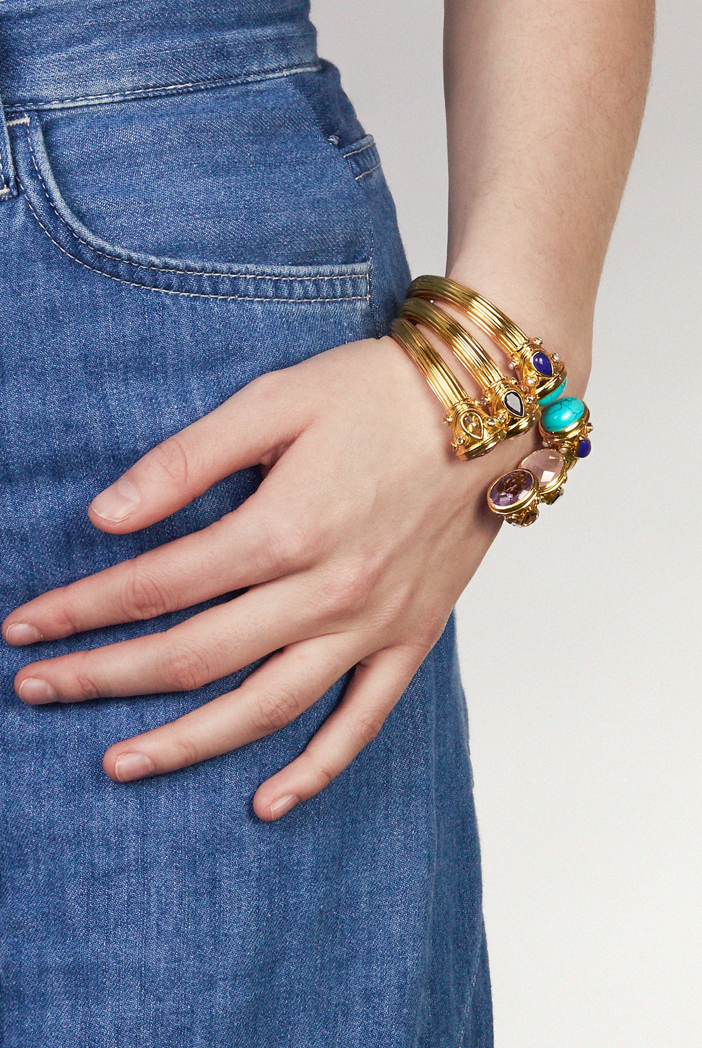 Immerse yourself in our signature Sheida collection, originally debuting as a one-of-a-kind design for a member of the Amrapali London family. Perfect for stacking, the Sheida collection comprises of vivid gemstones and gold-plated precious sterling silver to give a bold and unique look. The tradition of wearing and stacking bangles stems from ancient times in India where bangles were viewed as symbols of success, good health and fortune.