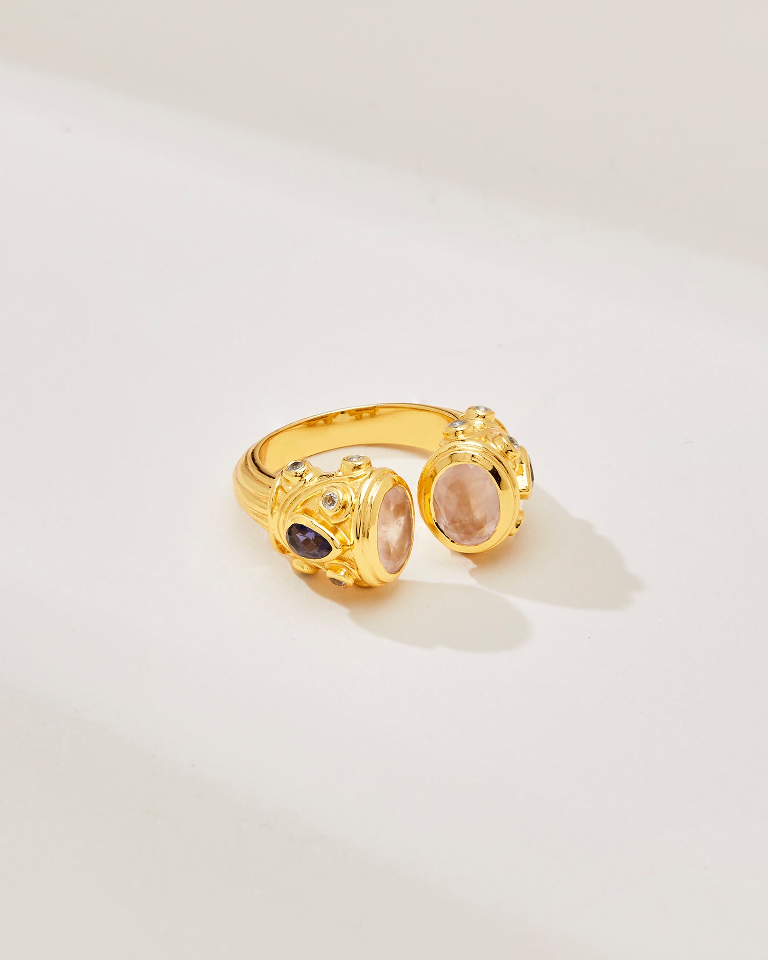 Petite Sheida Ring – Rose Quartz, Iolite, Blue Topaz | Silver & 24k Gold Vermeil