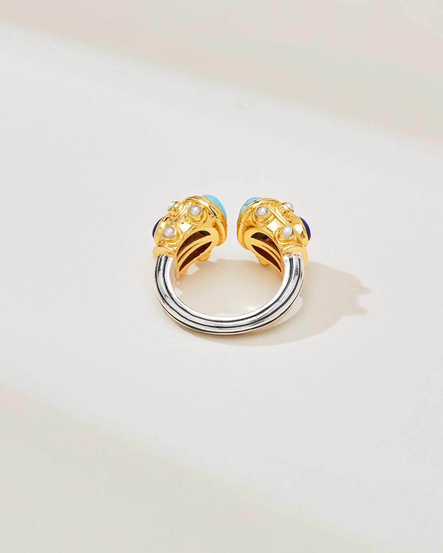 Petite Sheida Ring in sterling silver with 24k gold vermeil, set with turquoise, lapis & pearl.