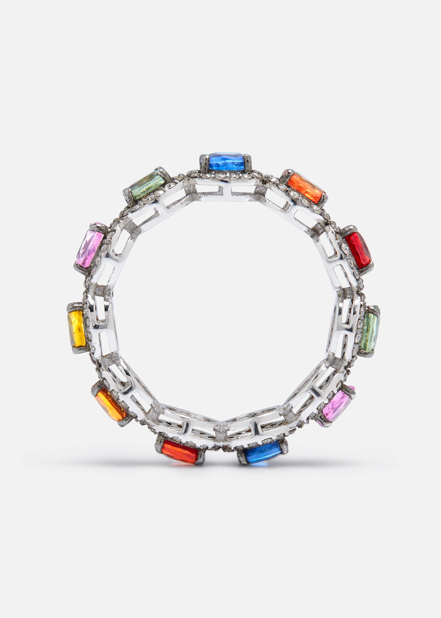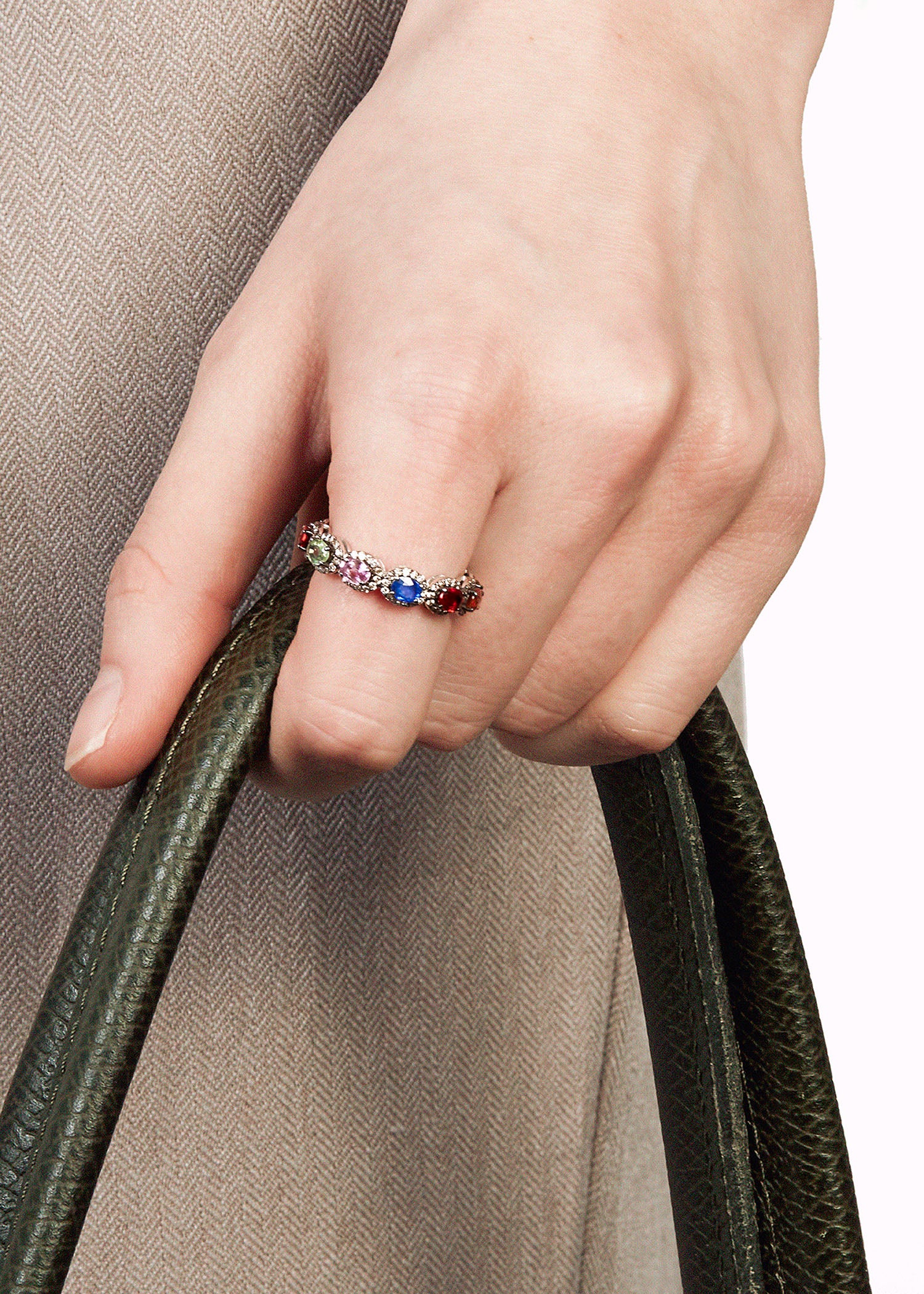 18K White Gold and Black Rhodium Mini Rajasthan Ring with Multi Sapphires.