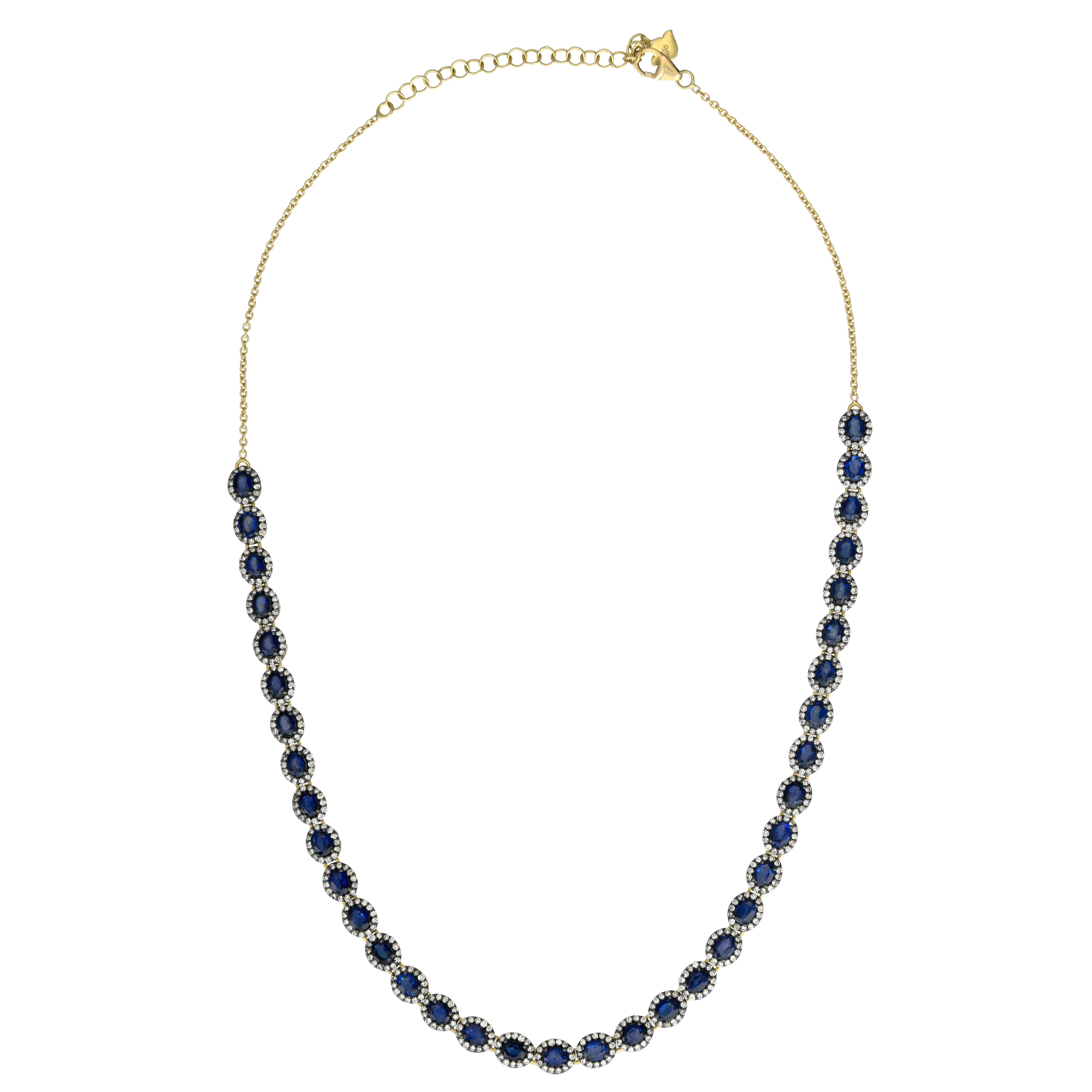 18K Yellow Gold Blue Sapphire & Diamond Mini Rajasthan Statement Necklace