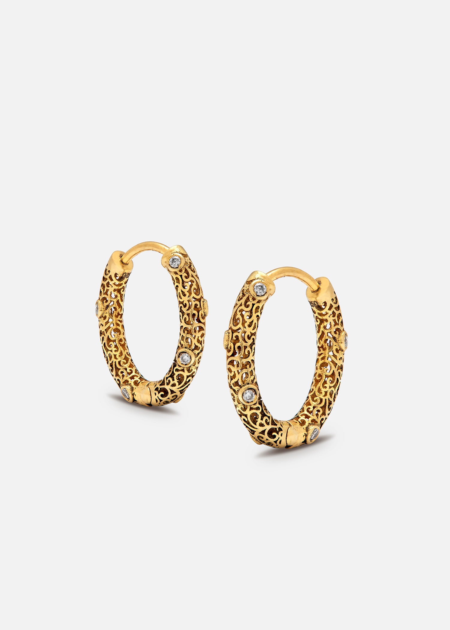 18K Yellow Gold and Diamonds Jali Huggies
