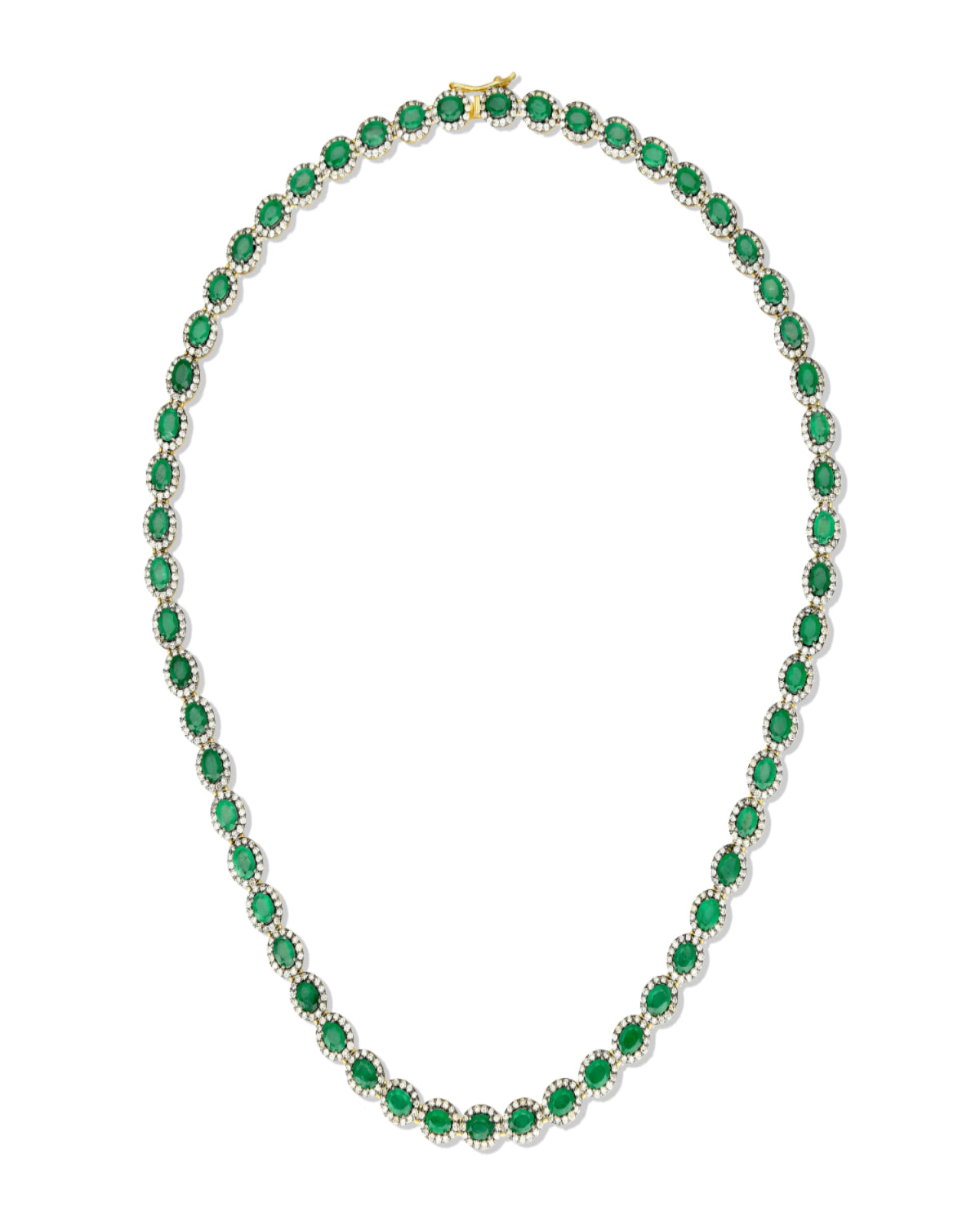 18K Yellow Gold Emerald & Diamond Mini Rajasthan Tennis Necklace