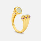 Wear the Maya Ring alone on a prominent finger for a statement, or pair it with slim gold bands or gemstone rings from the Nila Collection to create a layered, chic look. Perfect for both casual and evening wear.