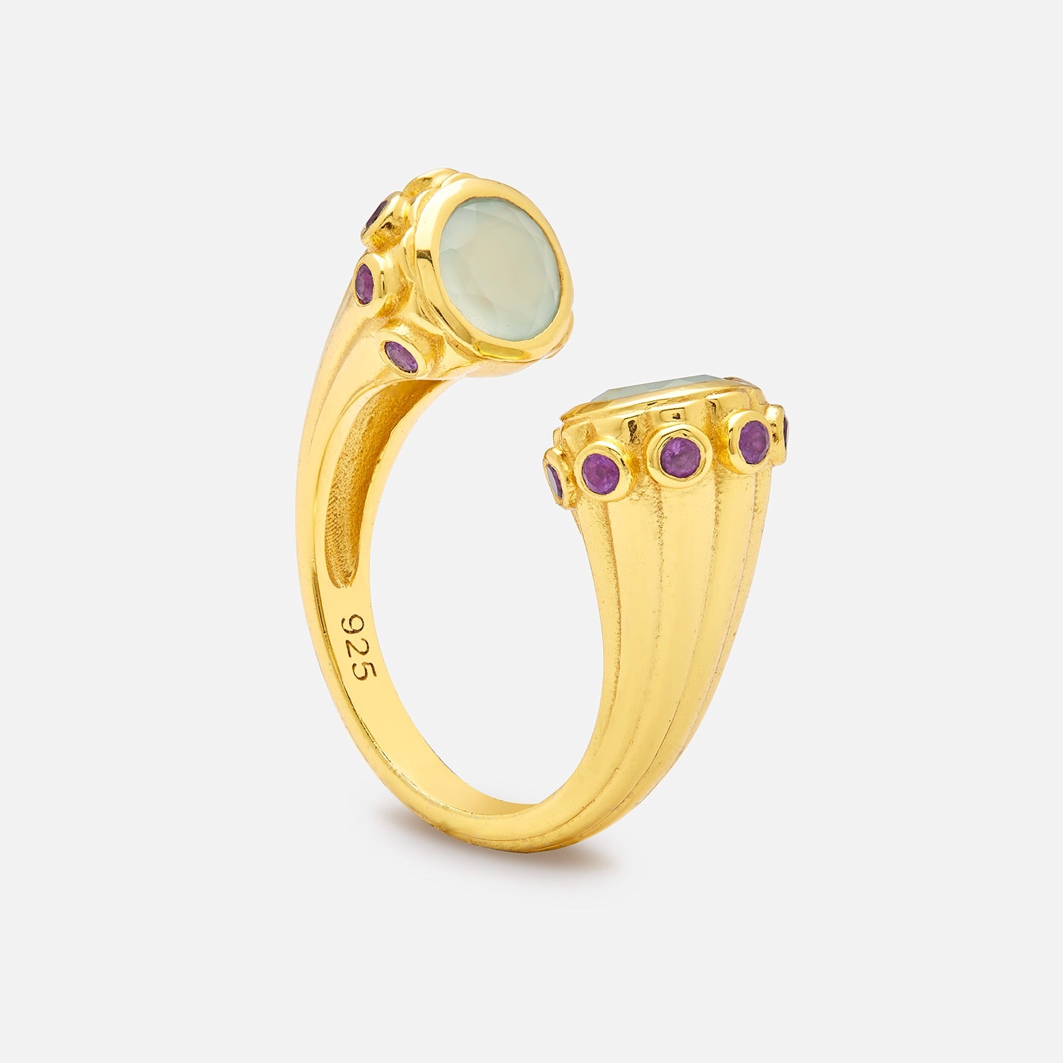Maya Ring with Aquamarine and Amethyst – 18K Gold-Plated Sterling Silver